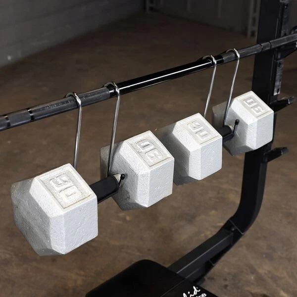 Twice the safety and half the cost of conventional Spotter Trays. If you ever tried to rerack a pair of heavy dumbbells back into the tray slots after shaking like a leaf in the wind from a hard set and smashing the back or your hands, you will understand the advantage of these awesome hooks. They will work with ANY rack or Smith machine that will hold a bar, and can be set at ANY height, and ANY width that you desire. Made from 5/16" stainless streel they have been tested with 250 lb dumbbells without a hint of failure. They are probably just fine for even heavier weights but we just don't have anyone here that can handle anything bigger! Sold in pairs. You have to try it to believe it. You won't be disappointed! These are carbon copies of the original pre-covid Country Power hooks that sold by the thousands to weightlifters everywhere. These hooks are not just for dumbbells either! If you like doing bench work with an EZ Curl of Super Curl bar that is too short for your rack, you can reverse the hooks and anchor them to your power bar in the rack and suspend the shorter bars from there; two hooks for the EZ and one center hook for your Super Curl. You won't find a better cradle in which to mount your wrist and forearm roller either. ..., and this is NOT just another great garage/home gym product! If train in a local gym, throw these hooks into your gym bag and become the most envied guy in the room..., OR ask the manager to buy several sets for ALL of the members to use. Another feature of these hooks is that you can STILL work with a spotter if you need to go to failure and beyond. The beauty in this is that now your spotter doesn't have to grope for the dummies, or try ty grab your wrists when you start to fade..., he or she can simply hold on to the hooks themselves and give you all the support or forced reps that you will ever want without interfering with your kinetic chain. CHRISTMAS IS JUST AROUND THE CORNER, but you don't need a holiday to treat yourself and your friends to a gift that will last a lifetime! This is the perfect gift for ANY weight lifting enthusiast. The shipping price is for outside the United States. Any international, tariffs, duties or customs charges are the buyer's responsibility.
