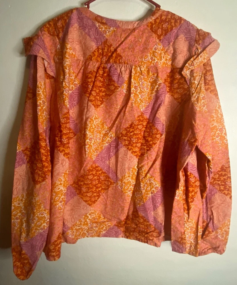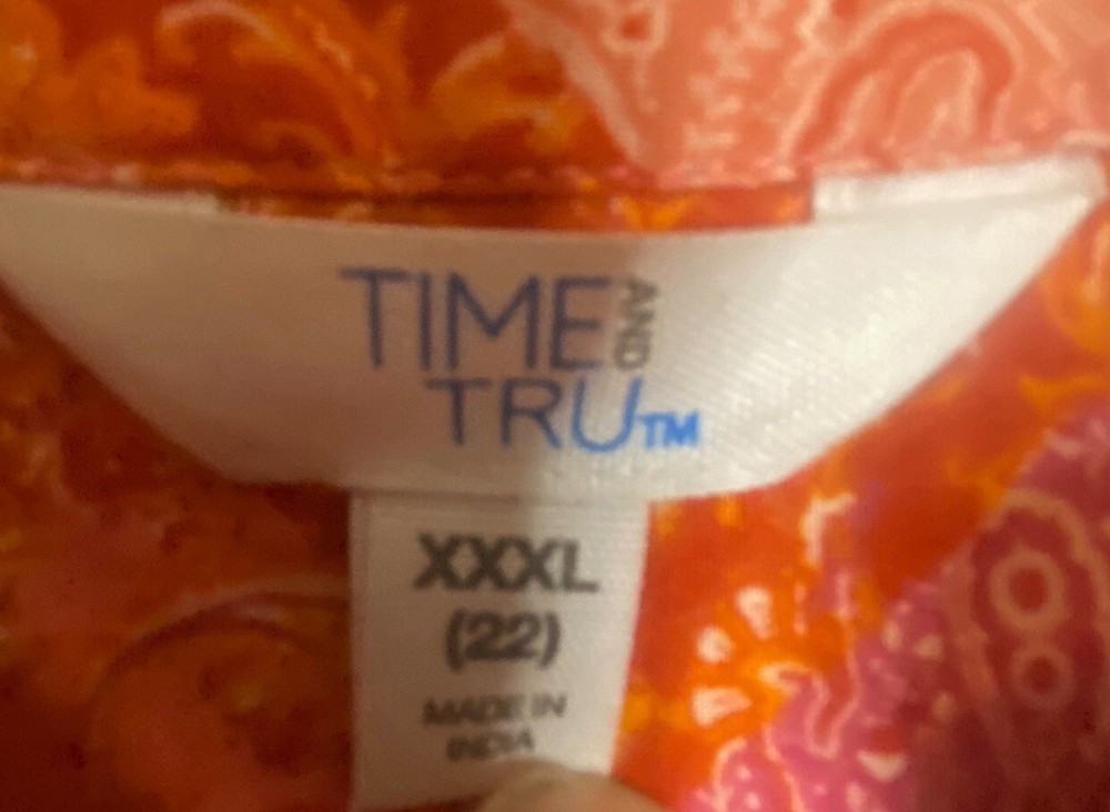Tried on, and it was too short. Length 22in. This Time And Tru top is a stylish addition to any wardrobe. The floral pattern, long flutter sleeves, and tie V-neck collar add a touch of elegance to the relaxed fit. The blouse is made of lightweight, breathable material that is easy to care for and perfect for all seasons. The multicolor design is perfect for casual occasions, and the top is available in size 22. The garment care is machine washable, making it easy to maintain.