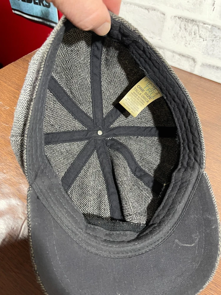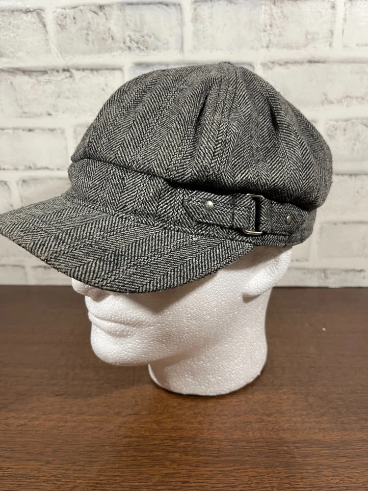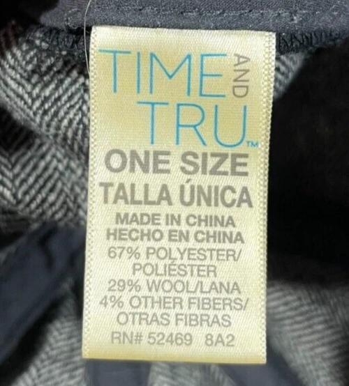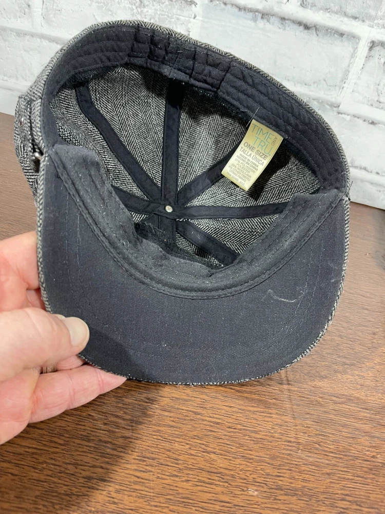 The Time and Tru Wool Blend Knit Cap is a stylish accessory perfect for women on the go. Made from a warm wool blend material in a classic gray herringbone pattern, this one-size cap features a unique buckle accent that adds a touch of flair. With its versatile style suitable for casual or travel occasions, this Time And Tru cap is a fashionable choice for all seasons. Very good preowned condition with normal preowned wear and some staining on the under side of the bill as pictured. Please see all photos.