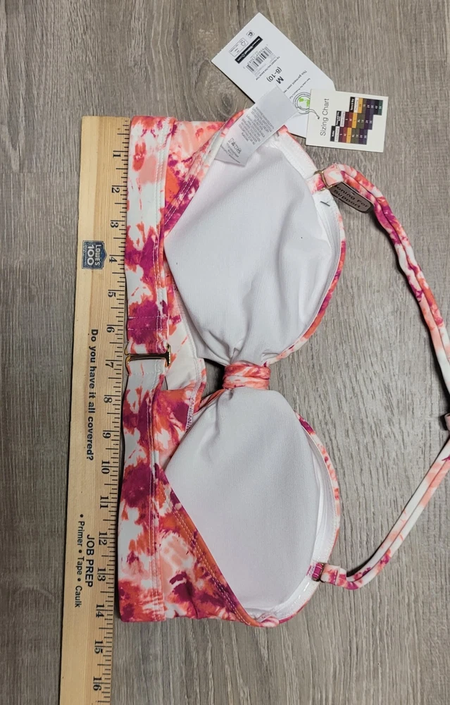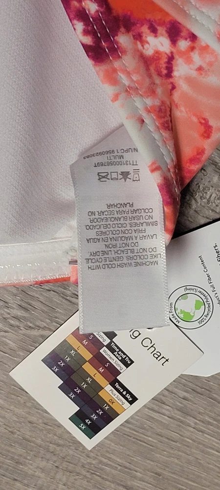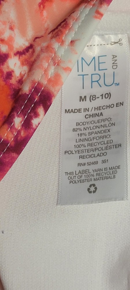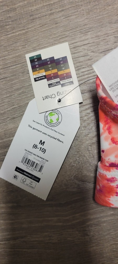 gtin13: Does not apply Accents: Adjustable Straps, Tie Front, Halter Swim Top Style: Bikini Top Strap Type: Halter Type: Tie Front Halter Country/Region of Manufacture: China Garment Care: Machine Washable Features: Padded Material: Nylon Spandex Recycled Polyester Department: Women Theme: Basic Brand: Time And Tru Size Type: Regular UPC: Does not apply Size: M Color: Multicolor Pattern: Tie Dye