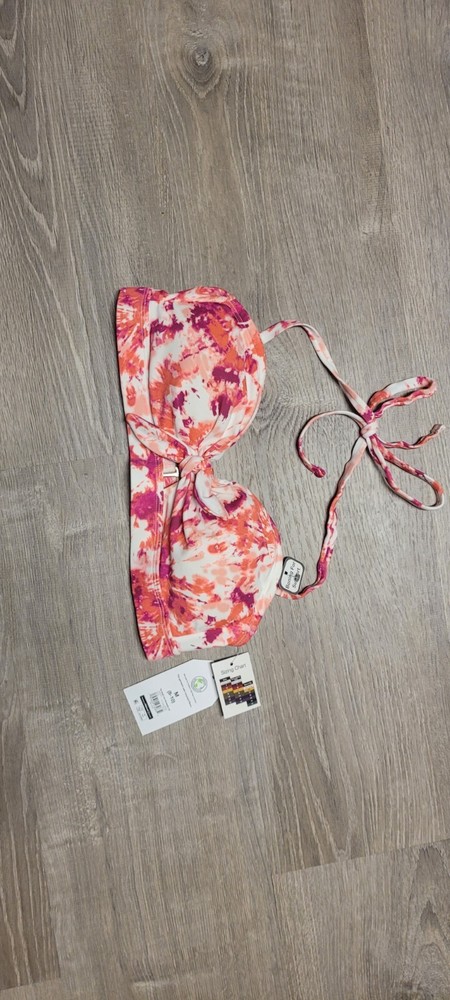 Get ready for some summer fun with this NWT Time and Tru Bikini Halter Top in size M (8-10). The tie-dye pattern in multicolor is perfect for the beach or pool. The top features adjustable straps and a tie front for a comfortable and secure fit. It is made of Nylon Spandex Recycled Polyester which is machine washable for easy care. This Tie Front Halter top has padded cups for extra support and a flattering shape. It's a basic yet stylish piece that you can mix and match with any swim bottom. Don't miss out on this must-have swimwear! NW2