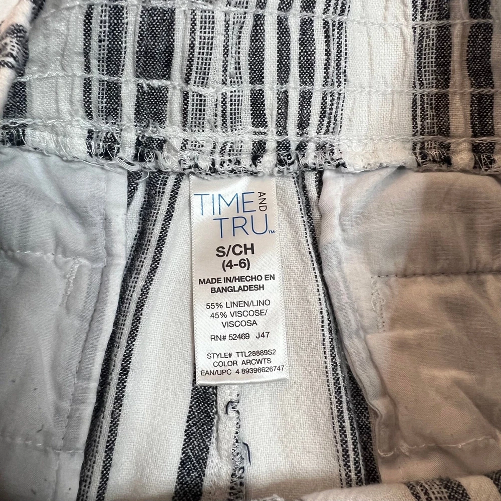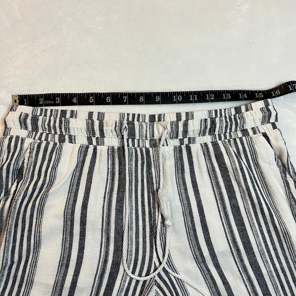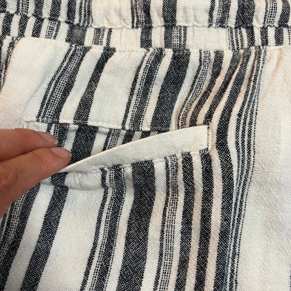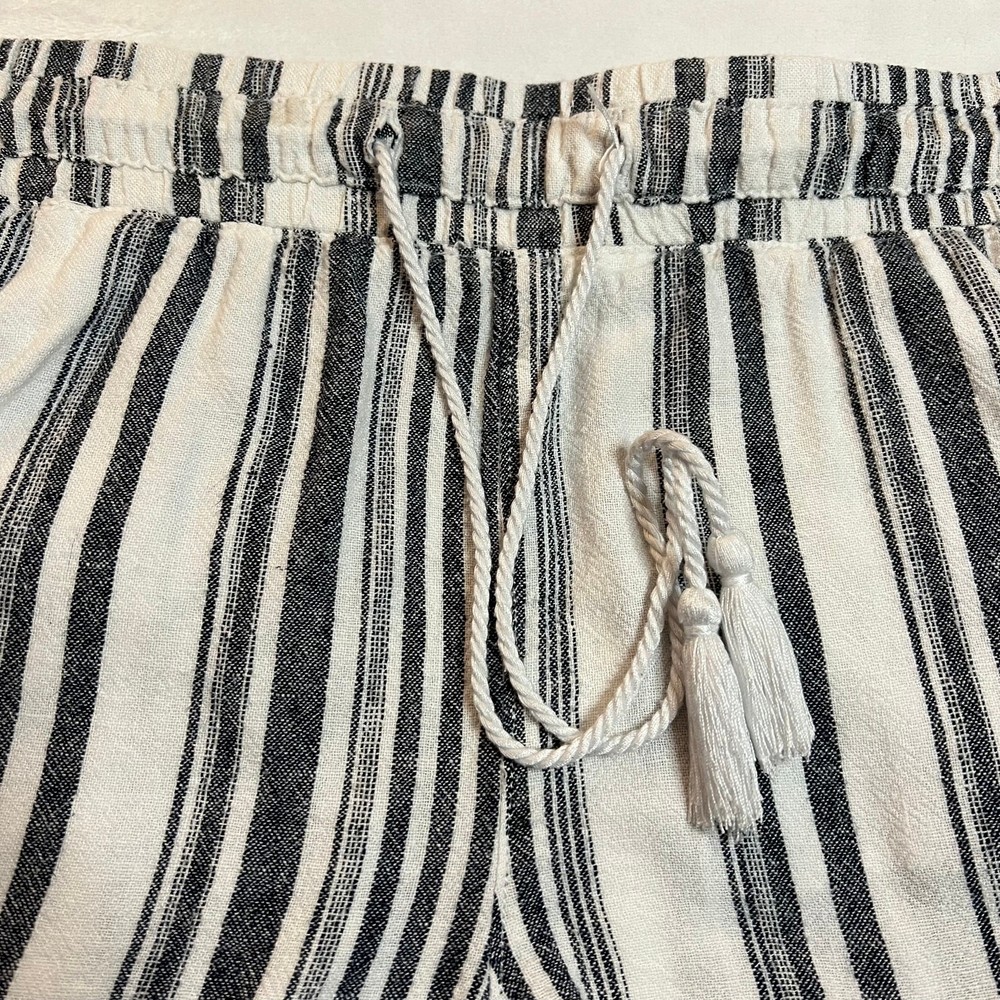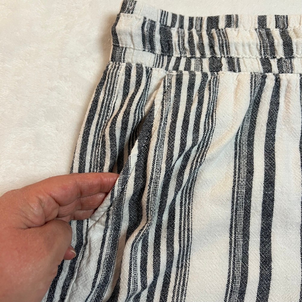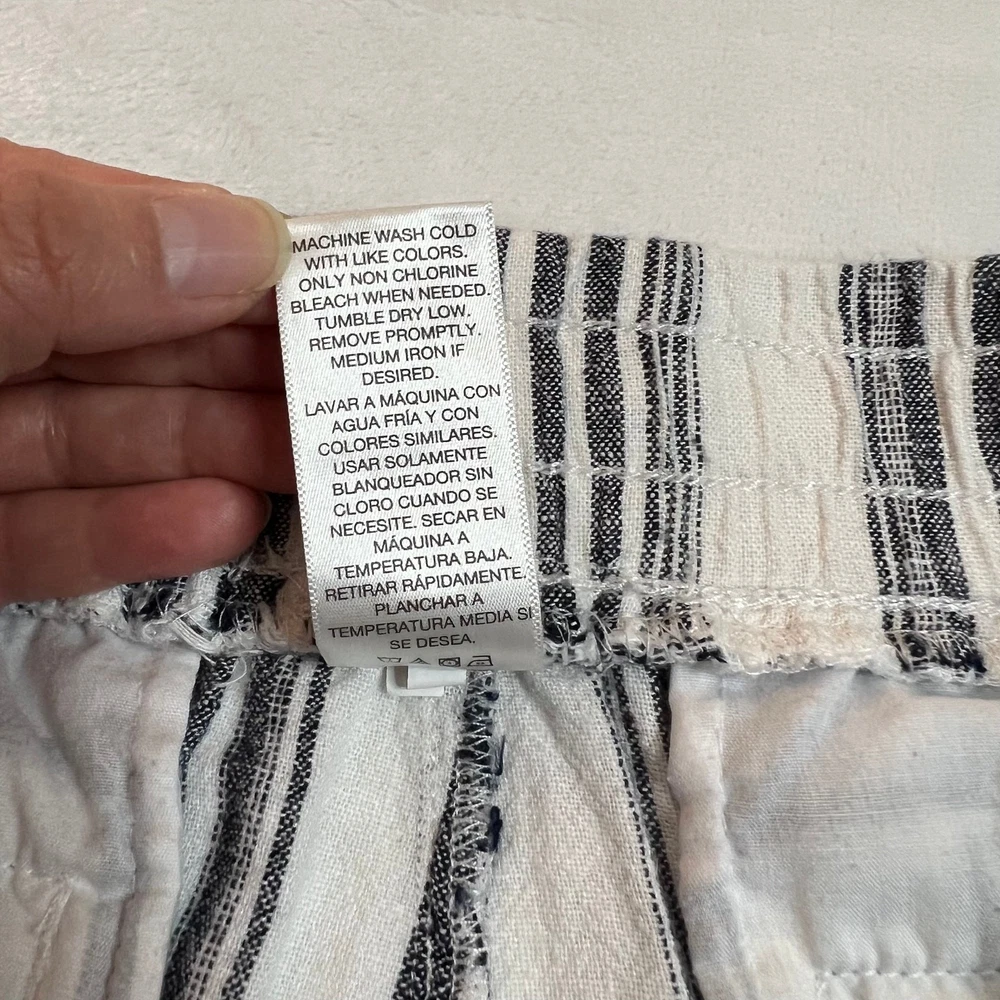Time and Tru Linen Blend Striped Elastic Waist Drawstring Shorts Nautical Beach CONDITION: Pre-Owned. Gently Used Condition. FLAWS/ALTERATIONS: Small stain on the back of the shorts. There is a small part of the rope drawstring that is frayed. Please see the last 2 pictures. COLOR: White/Blue SIZE: Women's Size Small DETAILS: Elastic Waist Rope drawstring with tassel ends Striped Lightweight Casual Front pockets Back pockets Raw hem Breathable MEASUREMENTS: Waist: 15.5" Rise: 10.75" Inseam: 4" **All measurements are approximate and are taken flat** MATERIAL: 55% Linen 45% Viscose Bundle 2 OR MORE items to save more! Reasonable offers are welcomed! TAGS: Casual Comfy Spring Summer Travel Vacation Minimalist Coastal Beach Nautical Resort Resortwear Preppy Classic Staple Colorful Multicolor Sustainable