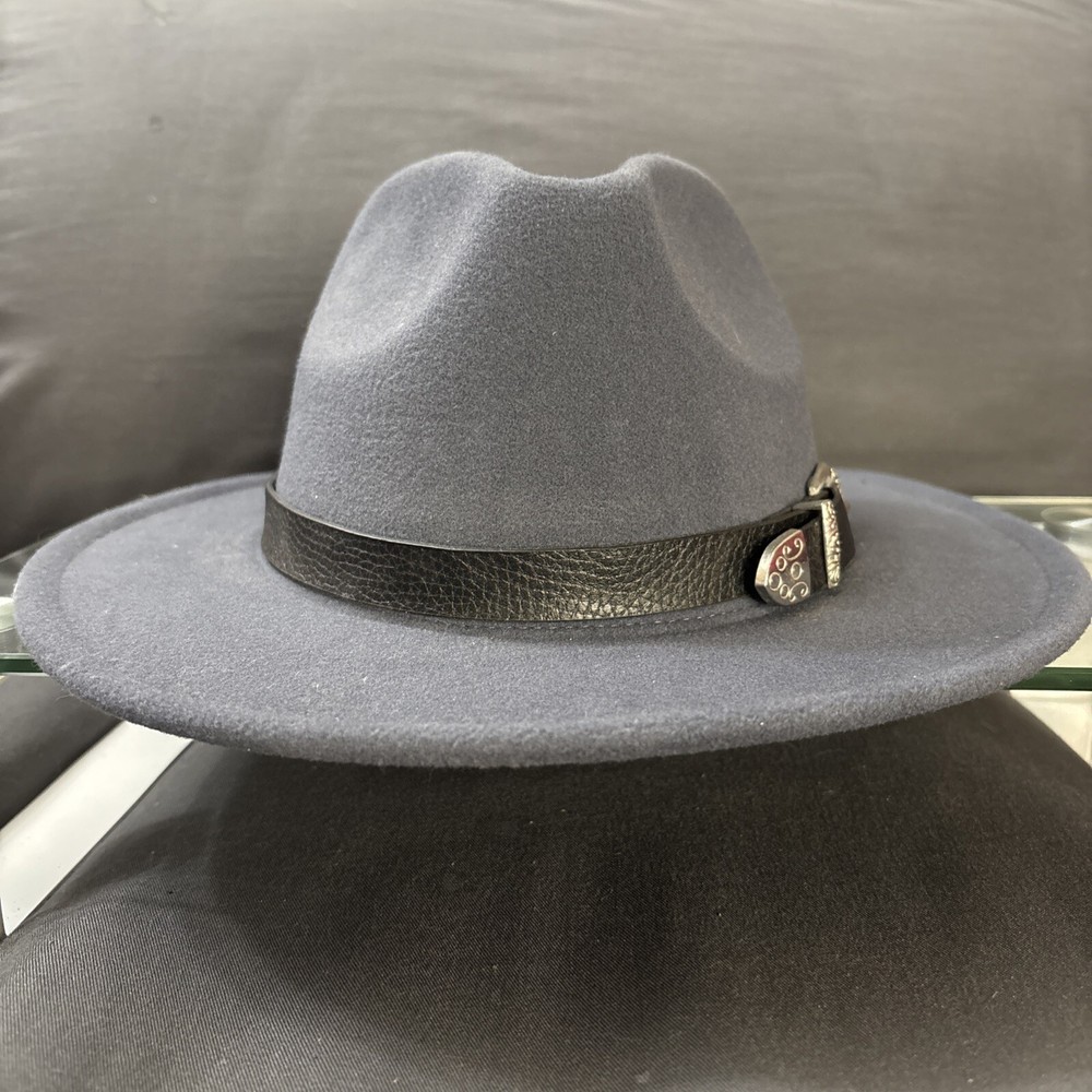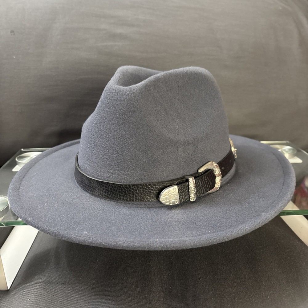 Enhance your outfit with the Time and Tru Fedora Hat, a stylish and versatile accessory that complements any ensemble. Its slate gray color offers a classic look, while the unique double buckle hat band adds a modern touch. Designed for unisex adults, this fedora is a one-size-fits-most, ensuring a comfortable fit for a variety of head sizes. Crafted from quality materials, this fedora is suitable for numerous occasions, from casual outings to travel adventures, and even for activewear. The solid pattern and buckle accents provide an understated elegance, making it a perfect accessory for any season – be it winter, summer, fall, or spring. Whether you're dressing up or down, this Time and Tru Fedora is sure to elevate your style.