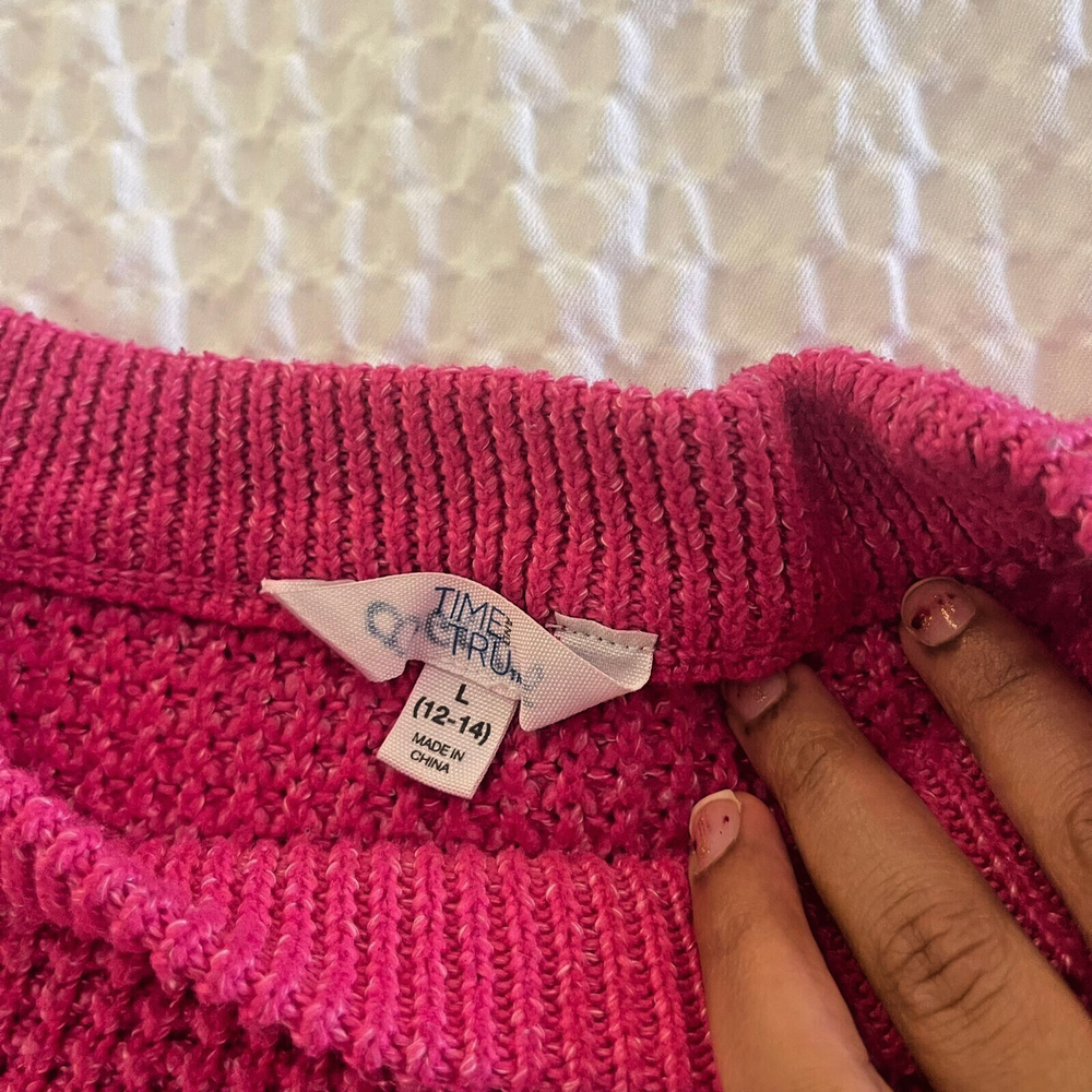 Brand: Time And Tru Occasion: Casual Size Type: Regular Size: L Sleeve Length: Long Sleeve Seller Notes: “Like New.” Type: Sweater Department: Women Style: Pullover Color: Pink Neckline: Crew Neck