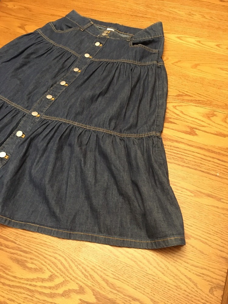 This beautiful Time and Tru denim maxi skirt in size 10 features button closure, mid-rise, and tiered design. It comes with pockets and is made of 100% cotton, making it machine washable for your convenience. The blue color adds a touch of elegance to the skirt, while the denim fabric type offers both durability and comfort. This skirt is perfect for any season, be it winter, summer, fall, or spring. The skirt length is long, making it ideal for formal and casual occasions. The brand, Time and Tru, is known for its quality products, and this skirt is no exception. Get yourself this stunning skirt today and enjoy the comfort and style it brings. Hip to hip 16.5" Top of waist to bottom hem 30" Please see all photos. Contact seller for any questions.