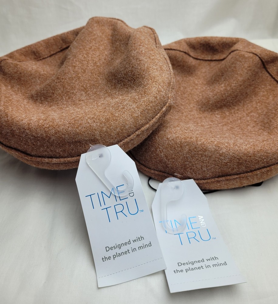 Time and Tru Women's Heathered Flannel Cabbie Brown Set Of 2 One Size New with Tags