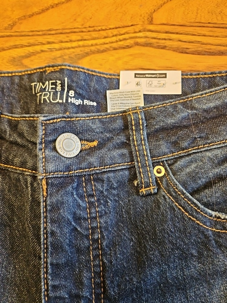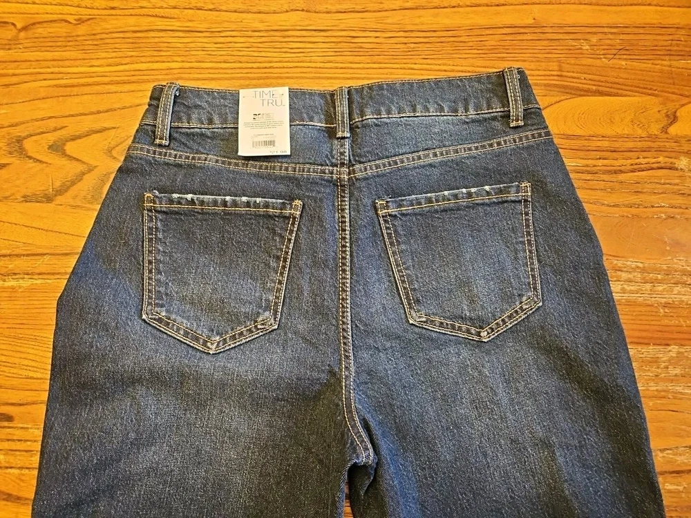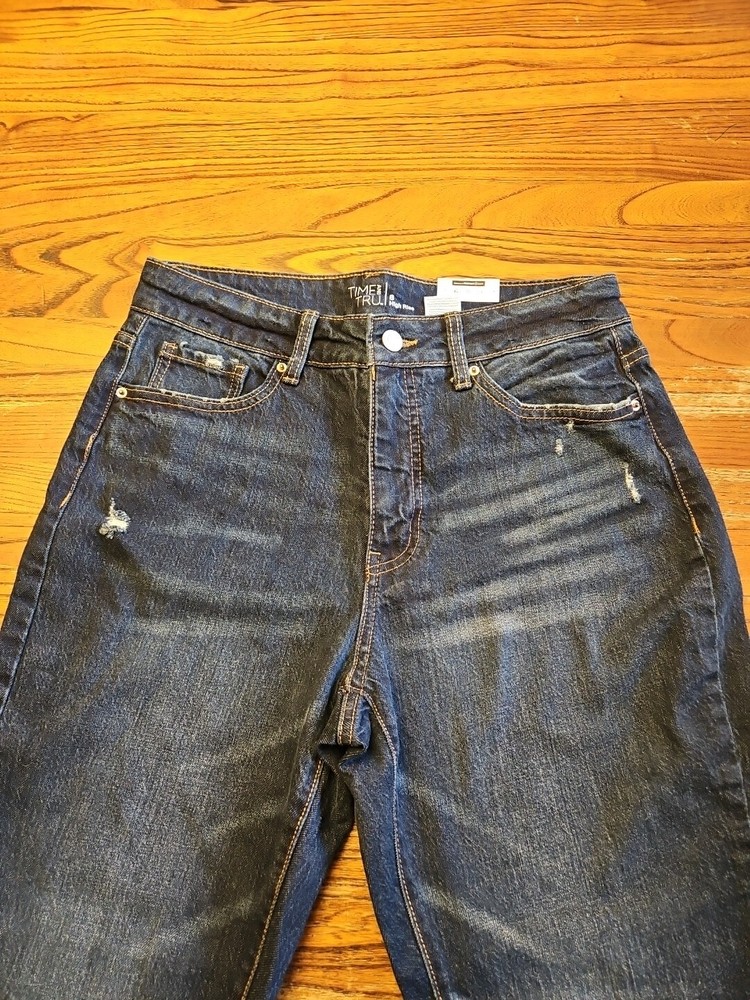 Elevate your wardrobe with these trendy Time and Tru Straight Crop Jeans in a beautiful dark wash. Made from a comfortable blend of 99% cotton and 1% spandex, these jeans feature a high rise with a 5-pocket design and zip and button closure. The distressed and stretch features add a touch of personality to these jeans, making them perfect for any season, whether it's winter, summer, fall, or spring. These jeans are machine washable and available in size 8 with a waist size of 30 in and inseam of 25 in. The solid pattern and denim fabric type make them versatile enough to pair with any outfit. Get your hands on these Time and Tru jeans, a must-have for any stylish and fashion-conscious woman. Ships in one business day. Combined shipping available. Please check measurements against a garment of your own that fits you, to reduce returns. Thanks! Check out my other items at my eBay store THEKITTYRYAN. Thanks for stopping by and checking out this listing. Have a great day!