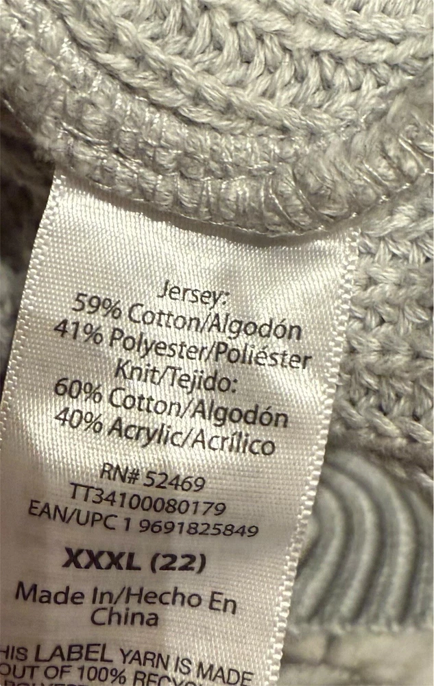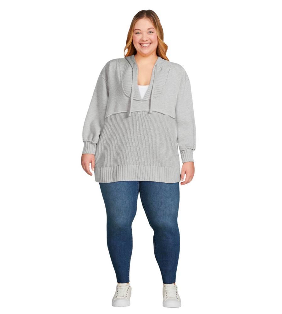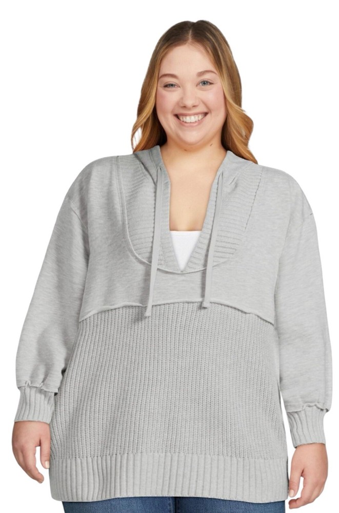 Time and Tru Womens Mixed Media Hoodie in 3XL Cozy Casual Style