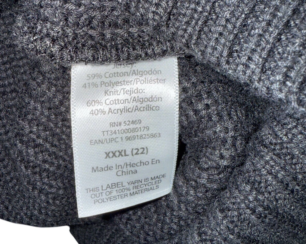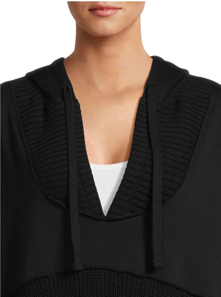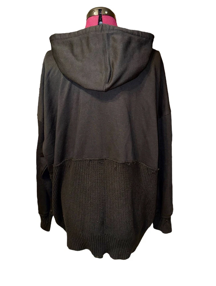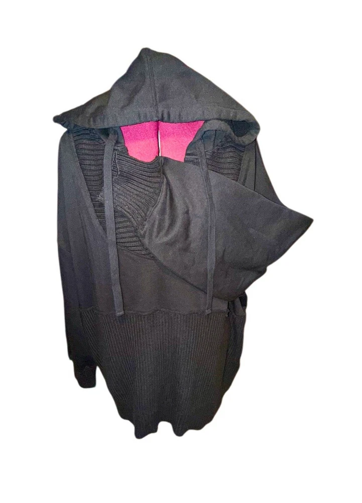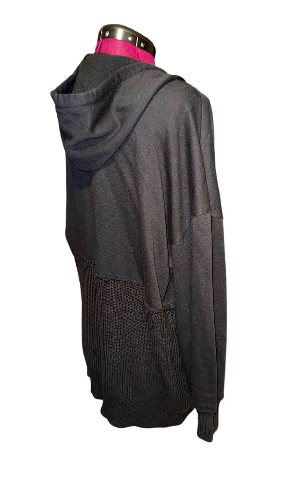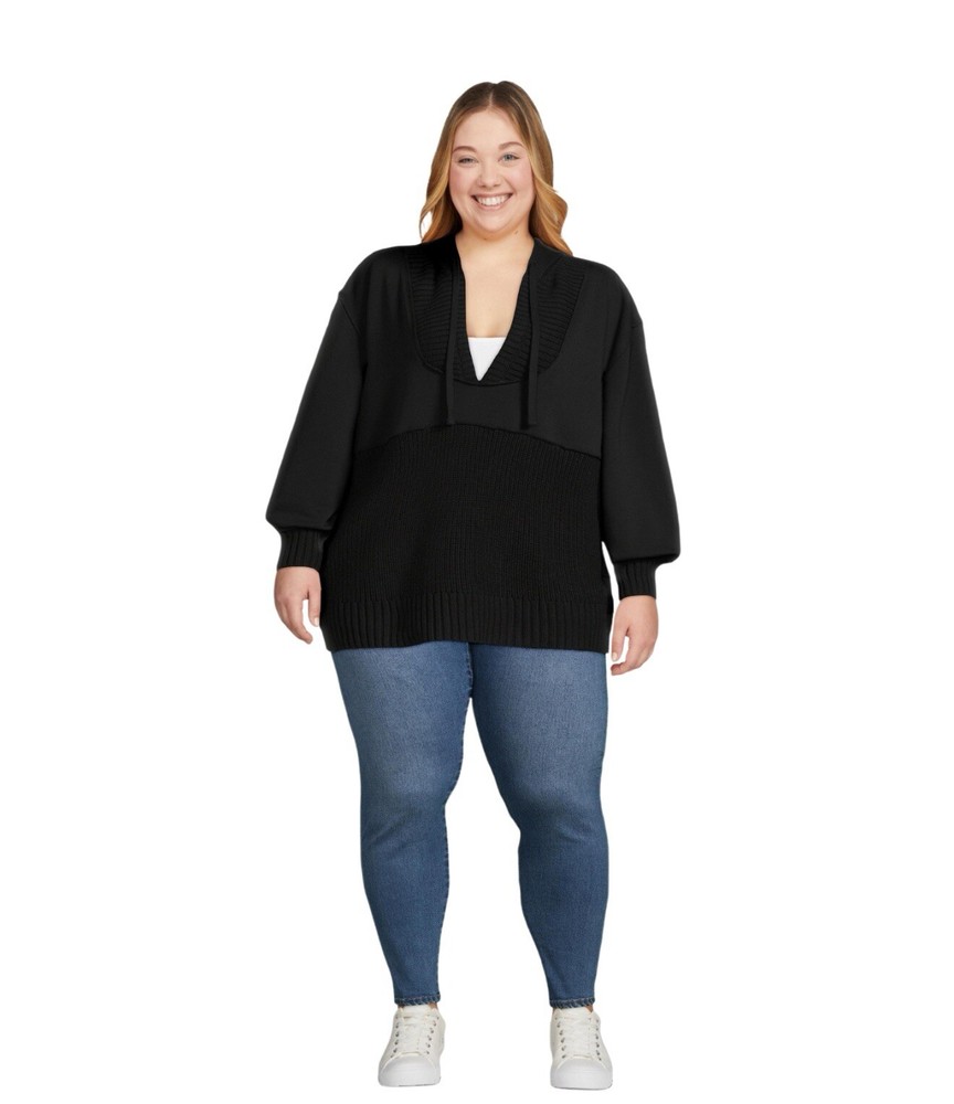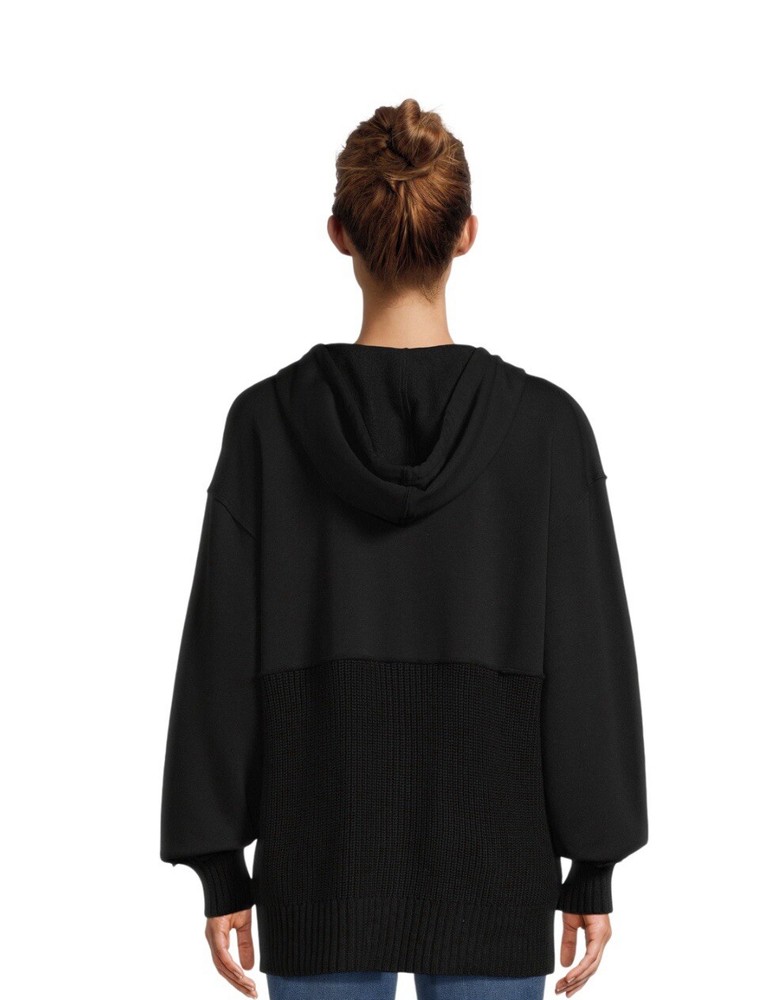 Elevate your activewear collection with the Time and Tru Women's Mixed Media Hoodie in a versatile black color. Tailored for a comfortable fit, this size 3XL pullover is designed to provide a relaxed touch to your casual outings or workout sessions. The blend of acrylic, cotton, and polyester ensures a soft feel with the durability needed for regular wear. The hoodie features a stylish V-neck and long sleeves complemented by a drawstring accent that adds a touch of sophistication to the classic hooded design. Solid in pattern yet chic in appearance, this hoodie is a testament to the effortless blend of comfort and style that Time and Tru is known for. Whether it's for a brisk jog or a laid-back day, this hoodie is an ideal addition to your wardrobe. Time and Tru Women's Mixed Media Hoodie Size 3XL Why have one when you can have both? Part sweater, part sweatshirt and 100% awesome, Time and Tru’s Mixed Media Hoodie is your new casual-day fave for everything from running errands to hanging at home. Relaxed and slightly oversized, this V-neck hoodie is the perfect match to your go-to denim or leggings. Material: 60% Cotton/40% Acrylic Care: Machine washable Country of Origin: Imported Size: Model is 5’3’’ and is wearing size XL Fit: Relaxed Neckline: V-neck with attached hood Closure: Pullover style Sleeves: Long sleeves Pockets: None Features: Mixed media design Womens Mixed Media Hoodie from Time and Tru Please refer to pics for measurements and any potential imperfections; Thank you!