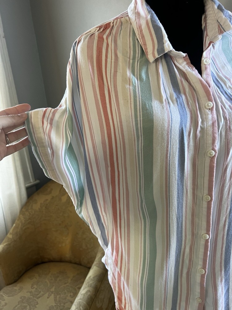 Time and Tru Women Multicolor Striped Button Up Oversized Top Blouse Sz Large. Condition is Pre-owned. Shipped with USPS Ground Advantage.