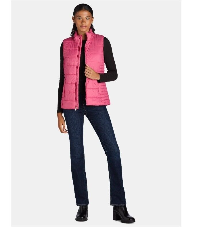 Product details Mix up your chilly weather layers with this stylish and versatile Puffer Vest from Time and Tru. A winter wardrobe essential, this puffer vest features a classic quilted design and ultra-lightweight, plush filling for added warmth without all the bulk. Layer this puffer vest over a long-sleeve, sweater, or hoodie. So many fun combos for so many occasions—on a hike, to run errands, or on your way to class. This puffer vest is sure to be your new go-to for fall and winter. Material: Shell: 100% Nylon; Filling: 100% Polyester; Lining:100% Polyester Care: Machine washable Country of Origin: Imported Size: Model is approx. 5’10” and is wearing a size S Fit Classic Weight: Lightweight Collar: Stand collar Closure: Front zip Sleeves: Sleeveless Pockets: 2 on-seam welt pockets Features: Zipper guard at neck; quilted pattern for elevated look; solid hues or pearlized hues Puffer Vest for Women and Plus Size Women from Time and Tru Fabric Care Instructions Machine Wash Cold; Only non-chlorine bleach when needed; Wash with like colors; Tumble dry low; Do not Iron; Close zipper before washing, remove promptly.