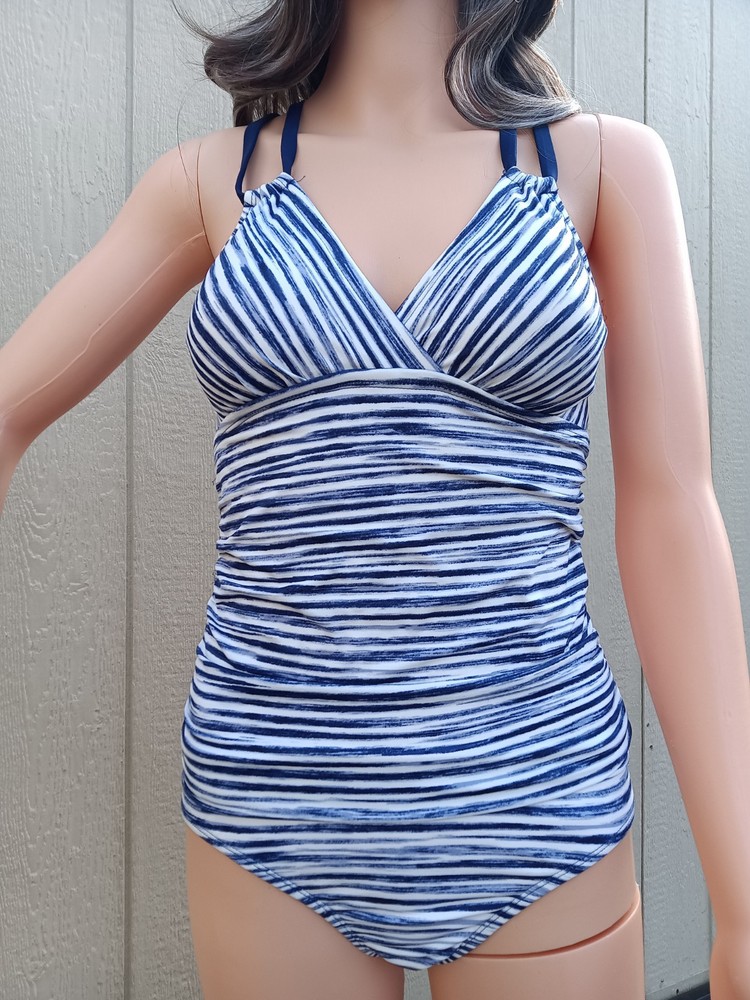 $ 7.4Lands' End Women's UPF 50 Flutter High Neck Tankini Top - Navy Blue S