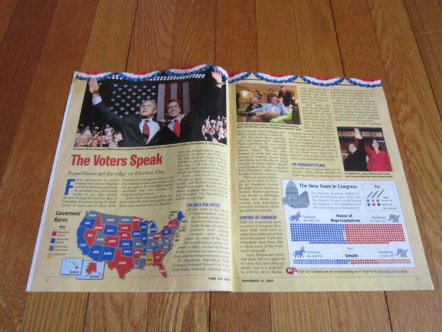 PLEASE NOTE: This is a used item. Please fully read item description for complete details of condition. Thank you! Vintage elementary school world news from early 2000’s. TIME FOR KIDS World Report Edition November 15, 2002 Election 2002 - Who won and what it means for the United States. Eight page paper that is like a kid’s newspaper or news magazine. Current events presented in an easy to understand format with color pictures. Age appropriate articles are about 1-3 short paragraphs, with a few featured articles that are longer. I think this issue was aimed towards 3rd or 4th graders. This was similar to the Weekly Reader of the 1960’s or so. Measures approximately 8 x 10.5 inches. This issue includes: Elephant ivory. Marian Runyan - Bones for Ice Age, Kenya Jordana James - 12 year old starting magazine for black teens And more. Shows light use/wear. Stained corners. Remains overall clean and in good shape. MORE ISSUES LISTED. US shipping will be FREE first class and includes delivery confirmation. Please message me with any questions. Lots more great items listed!! Thanks for looking!