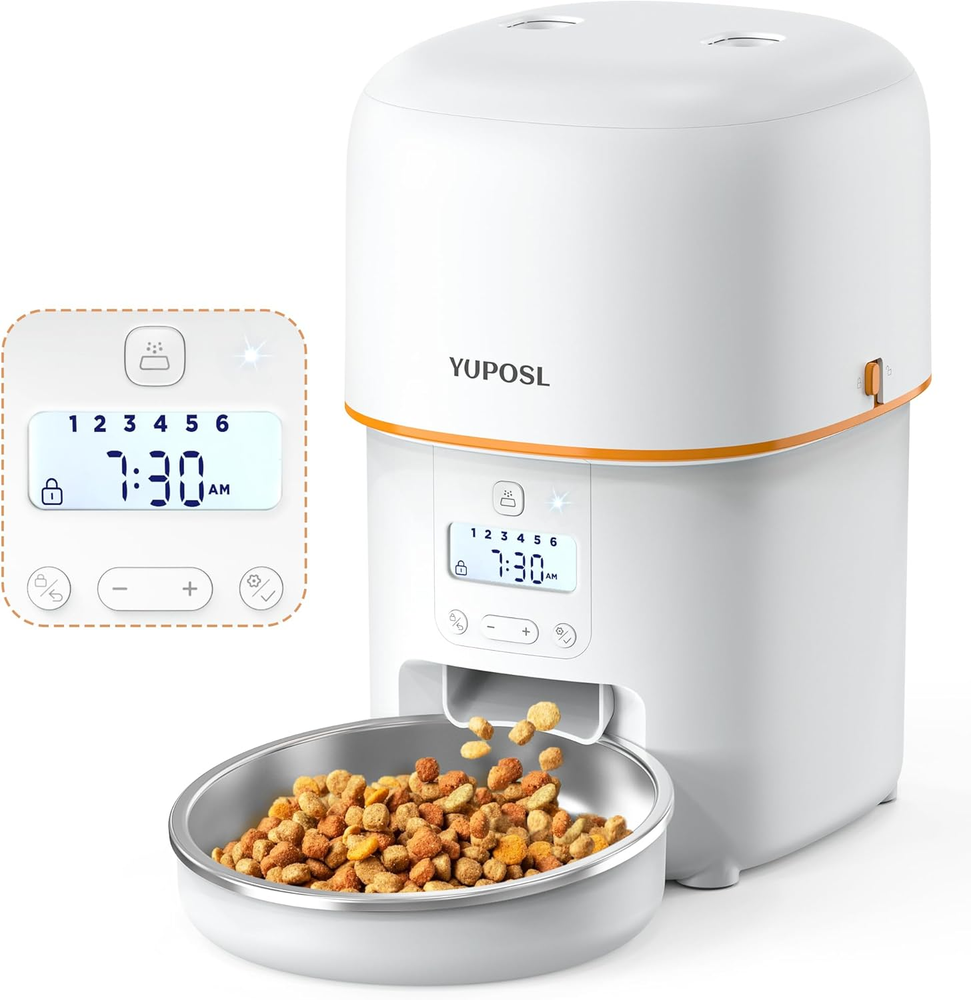 Store New Arrivals Add to Favorite View Feedback Contact Automatic Cat Feeders - 2L Cat Food Dispenser Easy to Use, Timed Automatic Pet Feeder with over 180-Day Battery Life, 1-6 Meals Dry Food Programmable Portion Control Also for Dogs Description Item model number YPF01-B001 Age Range Description All Life Stages Warranty Description 1 year manufacturer Number of Items 1 Style 1 Pack Target Audience Keyword house-cats, small-animal-pets, dogs, Cat,Dog,Small animal Breed Recommendation Small,Medium,Large Brand Name Yuposl Product Dimensions 7 x 7.8 x 9.4 inches; 2.9 Pounds Material Stainless Steel, Plastic, Acrylonitrile Butadiene Styrene Model Name YPF01-B001 Directions 1 Years Warranty Is Discontinued By Manufacturer No Item Package Dimensions L x W x H 12.17 x 8.03 x 6.93 inches Manufacturer Yuposl Item Weight 2.9 Pounds Specific Uses for Product Outdoor, Indoor Item Dimensions LxWxH 7 x 7.8 x 9.4 inches Color White Target Species cats,small dogs,small animals Recommended Uses For Product Feeding your Pets with Hand Remote Included Components Automatic Cat Feeder Brand Yuposl Size 2L Timed and Dosed Feeding: Schedule 1–6 meals per day with customizable portions to suit your pet's needs. Our automatic cat feeder accommodates dry food sizes ranging from 2–15mm, ensuring smooth dispensing without jams, even with larger kibble types like cat dental diets. Unlike other feeders that struggle with bigger pieces, our design ensures consistent feeding, providing your pet with a healthy and happy lifestyle, even when you're away. Keeps Food Fresh effectively: 2L/8 Cups capacity ensures the freshness of your pets' food. The pet feeder effectively insulates the air through the soft rubber rotor, and the upper part keeps the food fully fresh by strengthening the seal of the top lid and using desiccant. The Food-grade stainless steel bowl provides healthy and hygienic feeding, reducing the risk of chin acne for your pets. Dual Power Supply: Our auto pet feeder powered by 3 D-size alkaline batteries (Not Included) can provide more than 180 days of using, allowing you to easily place it anywhere in the room, and you can fully escape from hassle of messy cables. Of course feeder also supports wall power supply, giving you full flexibility and convenience. Say No to Naughty Paws: Tired of pets stealing extra food? We've got you covered. Our cat food dispenser features a spring-lock lid and a silicone sealing rotor that secures the food outlet between feedings. Even the cleverest paws can't sneak food out, no sticking paws up the food outlet, no endless snacking. Your cat gets the right amount of food, at the right time, every time. Suitable Two or more Pets: Small, cute and doesn't take up much space. Each pet can have its own dedicated automatic feeder. Multiple feeders help separate multiple pets without waiting and fighting for food. It helps you feed your pets more healthy and freely. Product Description 1 Keep Dry Food Fresh 2 Recommended Kibble Size 3 Dual Power Supply 1 Supply Days 2 Easy Operation 3 Manual Feeding 4 Stainless Steel Bowl Based on Yuposl Automatic PET Feeders Add to Cart Add to Cart Add to Cart Add to Cart Add to Cart Customer Reviews 4.4 out of 5 stars 3,391 4.2 out of 5 stars 226 4.4 out of 5 stars 554 4.4 out of 5 stars 3,391 4.4 out of 5 stars 3,391 4.4 out of 5 stars 554 4.4 out of 5 stars 554 Price $33.99 $ 33 . 99 $55.99 $ 55 . 99 $47.99 $ 47 . 99 $35.99 $ 35 . 99 $26.99 $ 26 . 99 $47.99 $ 47 . 99 — Capacity 8cup/68oz 8cup/68oz 8cup/68oz 16cup/135oz 8cup/68oz 8cup/68oz 16cup/135oz Meals Setting 1-6 Meals 1-15 Meals 1-15 Meals 1-6 Meals 1-6 Meals 1-15 Meals 1-15 Meals Portion Setting 1-16 Portions 1-99 Portions 1-16 Portions 1-16 Portions 1-16 Portions 1-16 Portions 1-16 Portions Allowed Kibble Sized 2-15mm 2-15mm 2-15mm 2-15mm 2-15mm 2-15mm 2-15mm Each Portion Sized 10ml ≈1/24cup ≈2/3tbsp ≈2tsp 10ml ≈1/24cup ≈2/3tbsp ≈2tsp 10ml ≈1/24cup ≈2/3tbsp ≈2tsp 10ml ≈1/24cup ≈2/3tbsp ≈2tsp 10ml ≈1/24cup ≈2/3tbsp ≈2tsp 10ml ≈1/24cup ≈2/3tbsp ≈2tsp 10ml ≈1/24cup ≈2/3tbsp ≈2tsp Control Manual APP APP Manual Manual APP APP Internet × 5G/2.4G 5G/2.4G × × 5G/2.4G 5G/2.4G Food Bowl Ceramic Stainless Steel Stainless Steel Stainless Steel Stainless Steel Stainless Steel Stainless Steel ABOUT US We offer the best prices around on high quality products. Our E-store includes media such as books, movies, music and games while offering electronics, toys, sporting apparel, clothing, tools, general home, garden items and more. SHIPPING We are always working hard to ensure your package arrives as soon as possible. Please understand that some factors like weather, high postal traffic, and the performance of shipping companies are outside of our control. We offer free shipping to the lower 48 states and ship within 2 business days of payment, usually sooner. We do not accept P.O. Boxes. Please provide a physical address. RETURNS We offer a 30-Day Return Policy on items which you are not completely satisfied with. You have the option for a full-refund or an exchange of the item. No returns are available on items shipped outside of the USA. PAYMENT We accept PayPal. CONTACT US This page content is yet to come Please ad us to your favorite seller and visit again later Thank You CUSTOMER SATISFACTION We try our very best to make sure every customer is completely satisfied. If there's a problem, message us! We're happy to help.
