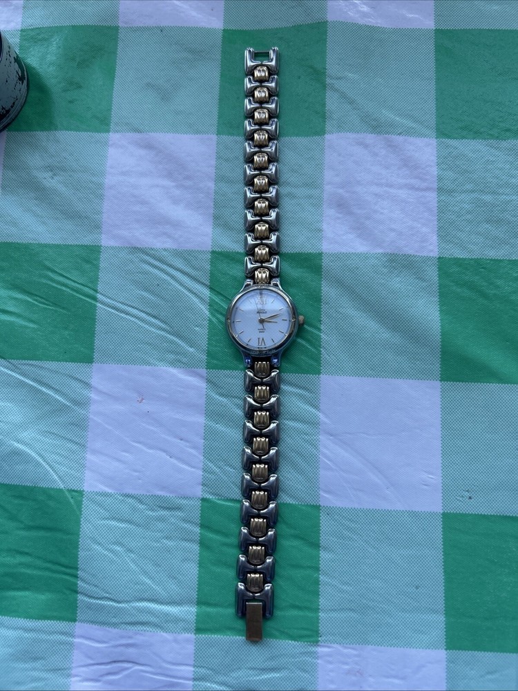 This watch is used and shows signs of wear. Please ask any questions you may have and we will get back to you as soon as possible. New battery installed upon purchase