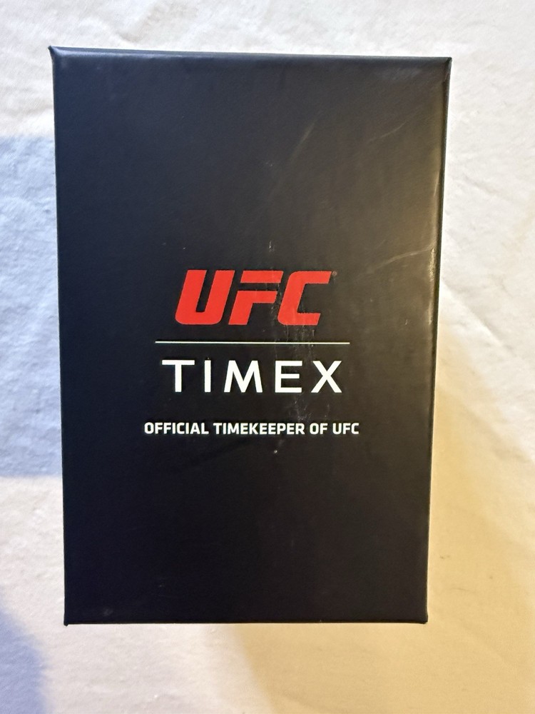 The Timex Men's Watch UFC Legend Black Dial Yellow Gold Expansion Bracelet TW2V56400 is a stylish and functional timepiece designed for men. Featuring a brass case with a yellow gold finish, this watch also boasts a black dial and a water resistance of 50 meters. The quartz movement ensures accurate timekeeping, while the date calendar adds a practical touch. The expansion bracelet band in yellow gold color fits comfortably on the wrist, making this watch a versatile accessory for any occasion. This timepiece also showcases the UFC theme, making it a must-have for fans of the sport.
