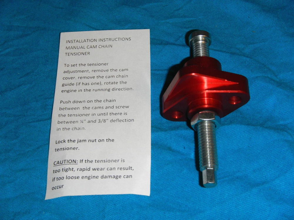 NEW READY TO INSTALL. VERY SIMPLE DESIGN. EASY TO USE. COMES WITH MOUNTING INSTRUCTIONS. THIS IS A RED TENSIONER. THIS FITS TRIUMPH: - 2009 to 2012 STREET TRIPLE 675 - 2009 to 2012 DAYTONA 675 - 2009 to 2012 TRIUMPH 675 REPLACE THAT OLD AUTOMATIC TENSIONER THAT WILL EVENTUALLY FAIL YOU. HAVE COMFORT KNOWING THIS ONE CAN NOT COLLAPSE UNDER STRESS. - CHEAPER THAN A NEW STOCK AUTOMATIC / PROBLEMATIC TENSIONER. THIS MANUAL CAM CHAIN TENSIONER IS DESIGNED TO REPLACE THE AUTOMATIC AND HYDRAULIC TENSIONERS ON HIGH PERFORMANCE ENGINES. THE AUTOMATIC ADJUSTERS CAN BACK OUT WHEN THE THROTTLE IS CLOSED SUDDENLY AT HIGH RPM. THIS ALLOWS THE CAMS TO GO MOMENTARILY OUT OF TIME, AND CAN RESULT IN BENT VALVES AND SERIOUS ENGINE DAMAGE. HYDRAULIC TENSIONERS HAVE A TENDENCY TO PUT TOO MUCH TENSION ON THE CHAIN GUIDE UNDER HIGH RPM (HIGH OIL PRESSURE CONDITIONS), RESULTING IN PREMATURE WEAR. BOTH PROBLEMS CAN BE ELIMINATED WITH THE INSTALLATION OF THIS MANUAL TENSIONER. NO MATTER WHAT THE ENGINE DOES, THE CAM CHAIN TENSION WILL REMAIN CONSTANT. THIS MANUAL CAM CHAIN TENSIONER IS A MUST FOR ANY KIND OF PERFORMANCE RIDING . THIS MANUAL TENSIONER IS CNC MACHINED FROM BILLET ALLOY TO EXACT TOLERANCES FOR PERFECT FIT.