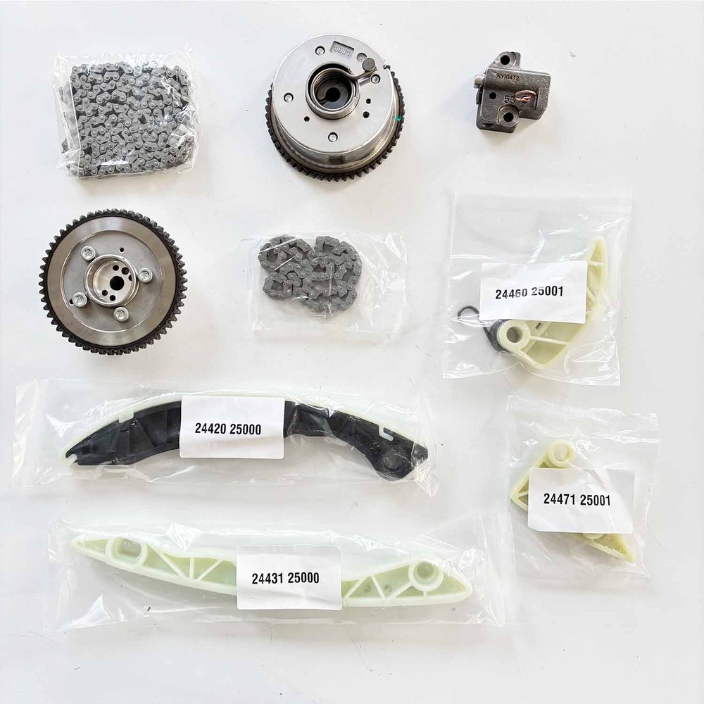 Store Categories Store Categories eBay Motors Parts & Accessories Automotive Tools & Supplies Details Timing Chain Kit w/ VVT Gears For Mitsubishi Lancer Lancer Outlander Kia Forte Product Description Condition : New Manufacturer Part Number : 24350-25000, 24350-2G600, 23121-25050, 23121-25060, 24321-25000, 2432125000, 24322-25000, 24420-25002, 24431-25001, 24460-25001, 24471-25001 Fitment: 2007-2009 Dodge Caliber 1.8L 1798CC 110CID L4 DOHC 2010-2012 Hyundai Genesis Coupe 2.0L 1998CC 122CID L4 DOHC Turbocharged 2011-2013 Hyundai Tucson 2.0L 1975CC L4 DOHC 2011-2012 Kia Forte 2.0L 1998CC 122CID L4 DOHC Package included: Timing Chain (180 Link) x 1PCS Lower Chain (76 Links) x 1PCS Tensioner Rail (Lower Tensioner Rail) x 1PCS Guide Rail (Lower Chain Fixed Rail) x 1PCS Guide Rail (Long Fixed Rail) x 1PCS Guide Rail (Curved Tensioner Rail) x 1PCS Tensioner (Timing Chain Tensioner) x 1PCS Intake Camshaft Phaser VVT x 1PCS Exhaust Camshaft Phaser VVT x 1PCS Note: Please check the OE code on your old part before purchasing! It would be highly appreciated if you might contact us first once you have any problems concerning the items. And you can expect all the issues would be resolved ASAP! About Us Shipping Policy Payment Method Returns Policy Contact Us About Us We are committed to providing products with high quality and low price. We sell all kinds of products, such as engine components, brake systems,Transmission & Drivetrain parts, filters, or other crucial parts,etc. Please subscribe to our ebay store for more information about our store. Shipping Policy All items are shipped from our United States local warehouse. All orders will be shipped within 3 business days after payment is cleared. We only ship to Paypal confirmed address, please make sure that the address is correct before you check out. Payment Method Please use the eBay checkout system when paying for your order. Paypal allows to pay by Credit Card, Direct Debit, VISA, eCheck, or other methods, please kindly check Paypal for more information. Returns Policy 30 Days Free Return and Money Back. If you are not satisfied with your purchase for any reason ( and the part is brand new, has not been installed or damaged in any way) please return it within 30 days for a refund. Please contact us before return. Contact Us Customer satisfaction is always our top priority! If you have any questions while shopping,please contact us first via eBay Messaging—we’re here to resolve issues swiftly and ensure your satisfaction! Before submitting your feedback, if you have any concerns or require assistance, please feel free to reach out through our channels. We firmly believe that through open communication, we can prevent unnecessary misunderstandings and work together to provide you with a satisfactory resolution. Home Payment Shipping About us Contact us Store Categories Store Categories eBay Motors Parts & Accessories Automotive Tools & Supplies Details Timing Chain Kit w/ VVT Gears For Mitsubishi Lancer Lancer Outlander Kia Forte Product Description Condition : New Manufacturer Part Number : 24350-25000, 24350-2G600, 23121-25050, 23121-25060, 24321-25000, 2432125000, 24322-25000, 24420-25002, 24431-25001, 24460-25001, 24471-25001 Fitment: 2007-2009 Dodge Caliber 1.8L 1798CC 110CID L4 DOHC 2010-2012 Hyundai Genesis Coupe 2.0L 1998CC 122CID L4 DOHC Turbocharged 2011-2013 Hyundai Tucson 2.0L 1975CC L4 DOHC 2011-2012 Kia Forte 2.0L 1998CC 122CID L4 DOHC Package included: Timing Chain (180 Link) x 1PCS Lower Chain (76 Links) x 1PCS Tensioner Rail (Lower Tensioner Rail) x 1PCS Guide Rail (Lower Chain Fixed Rail) x 1PCS Guide Rail (Long Fixed Rail) x 1PCS Guide Rail (Curved Tensioner Rail) x 1PCS Tensioner (Timing Chain Tensioner) x 1PCS Intake Camshaft Phaser VVT x 1PCS Exhaust Camshaft Phaser VVT x 1PCS Note: Please check the OE code on your old part before purchasing! It would be highly appreciated if you might contact us first once you have any problems concerning the items. And you can expect all the issues would be resolved ASAP! About Us Shipping Policy Payment Method Returns Policy Contact Us About Us We are committed to providing products with high quality and low price. We sell all kinds of products, such as engine components, brake systems,Transmission & Drivetrain parts, filters, or other crucial parts,etc. Please subscribe to our ebay store for more information about our store. Shipping Policy All items are shipped from our United States local warehouse. All orders will be shipped within 3 business days after payment is cleared. We only ship to Paypal confirmed address, please make sure that the address is correct before you check out. Payment Method Please use the eBay checkout system when paying for your order. Paypal allows to pay by Credit Card, Direct Debit, VISA, eCheck, or other methods, please kindly check Paypal for more information. Returns Policy 30 Days Free Return and Money Back. If you are not satisfied with your purchase for any reason ( and the part is brand new, has not been installed or damaged in any way) please return it within 30 days for a refund. Please contact us before return. Contact Us Customer satisfaction is always our top priority! If you have any questions while shopping,please contact us first via eBay Messaging—we’re here to resolve issues swiftly and ensure your satisfaction! Before submitting your feedback, if you have any concerns or require assistance, please feel free to reach out through our channels. We firmly believe that through open communication, we can prevent unnecessary misunderstandings and work together to provide you with a satisfactory resolution. On Feb 21, 2026 at 09:57:28 PST, seller added the following information: