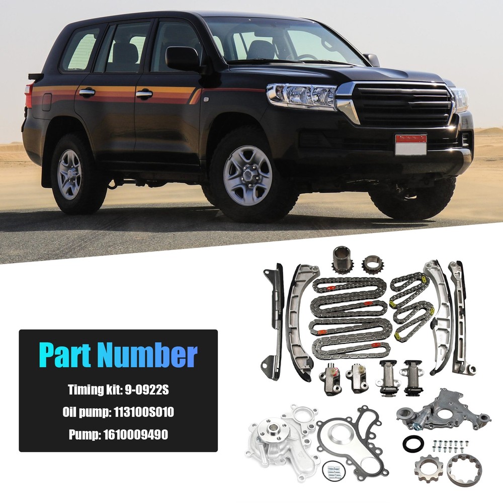 FEATURES 1 Manufactured with Precision to Meet OE Standards IATF16949 Certified. 2 High Quality & Brand New 3 Two Year Warranty. 4 After Market Replacement 5 Customers Service Center Will Deal with Pre-sale and After-sale Problems In Time 6 Factory Affordable Price with High Quality Service: Return/ Replace/ Offer Technical Support. FITMENTS 2008-2011, 2013-2020 Lexus LX570 5.7L 2008-2011, 2013-2020 Toyota Land Cruiser 5.7L 2008-2020 Toyota Sequoia 5.7L 2007-2020 ToyotaTundra 5.7L Timing Chain Kit Oil & Water Pump for 2007-2020 Lexus Toyota Tundra Sequoia 5.7L FEATURES 1 Manufactured with Precision to Meet OE Standards IATF16949 Certified. 2 High Quality & Brand New 3 Two Year Warranty. 4 After Market Replacement 5 Customers Service Center Will Deal with Pre-sale and After-sale Problems In Time 6 Factory Affordable Price with High Quality Service: Return/ Replace/ Offer Technical Support. FITMENTS 2008-2011, 2013-2020 Lexus LX570 5.7L 2008-2011, 2013-2020 Toyota Land Cruiser 5.7L 2008-2020 Toyota Sequoia 5.7L 2007-2020 ToyotaTundra 5.7L OEM NUMBER 90922S, 9-0922S, 170-4000, AW6197, OPTO50K, 113100S010, 113100S020 ITEM INCLUDES 2 Timing Chain Lower (112L,2 Required Primary) 2 Timing Chain Upper (46L,2 Required Secondary) 1 Tensioner Lower (Right) 1 Tensioner Lower Left (Left, Primary) 1 Tensioner Upper (Right Upper) 1 Tensioner Upper (Left Upper) 1 Guide Rail Lower (Left Fixed Rail) 1 Guide Rail Lower (Right Tensioner Rail) 1 Guide Rail Lower (Left Tensioner Rail) 1 Guide Rail Lower (Right Fixed Rail) 1 Crank Sprocket (Outer, Left, 18 Teeth) 1 Crank Sprocket (Inner Right, 18 Teeth) 1 Water Pump 1 Oil Pump 1 Guide Rail Lower (Left Tensioner Rail) 1 Guide Rail Lower (Right Fixed Rail) 1 Crank Sprocket (Outer, Left, 18 Teeth) 1 Crank Sprocket (Inner Right, 18 Teeth) 1 Water Pump 1 Oil Pump Payment💵 Shipping🚚 Returns🚛 Contact us📞 Feedback✨ Payment💵 We accept Paypal only for the payment, and all orders should be paid through Ebay auction, please do not pay directly to our Paypal account. Paypal allows to pay by Credit Card, Direct Debit, VISA, eCheck, or other methods, please kindly check Paypal for more information. Please use the eBay checkout system when paying for your order. Immediate payment is required for all orders. Shipping🚚 All of our products ship from the United States Please leave us your full name, your telephone number and detailed address when ordering. We ship to your eBay or Paypal address. Please make sure your eBay and Paypal address is correct before you pay the order. We try our best to pack the item as good and safe as possible ,so they always arrive in a good condition.If the item arrives damaged, please contact us before returning it, and we will send you a replacement or provide you with a satisfactory solution. Important notice: * Please update your phone number for delivery contact when checking out. * Changing shipping address is not available after the shipment. Returns🚛 If you are not satisfied with the product, we support returns and refunds You can return the products in 30 days aftre receiving the products. Please contact us for the authoried free return label before sending back. To speed up the process, please let us know the reason why you want to return. If the reason is our side, please take some picture or video for evidence. Contact us📞 We are here to help with any questions or problems you may have. Please feel free to contact us by eBay message. We will reply all your messages promptly .Some message sent after business hours will be replied within 12 hours. We strive for 100% c ustomer satisfaction! FEEDBACK IS VERY IMPORTANT TO US. We request that you contact us immediately BEFORE you give us neutral or negative feedback, so that we can satisfactorily address your concerns. Feedback✨ Your feedback is very important to us. If you can't leave us a " 5-Star " rating and a positive feedback, please contact us without hesitation before leaving feedback. We are eager to work with our customers. We believe in communication. Give us a call or send us an email, we will make things right for our buyers. Positive feedback for our buyers will be left automatically by eBay Seller Manager Pro.