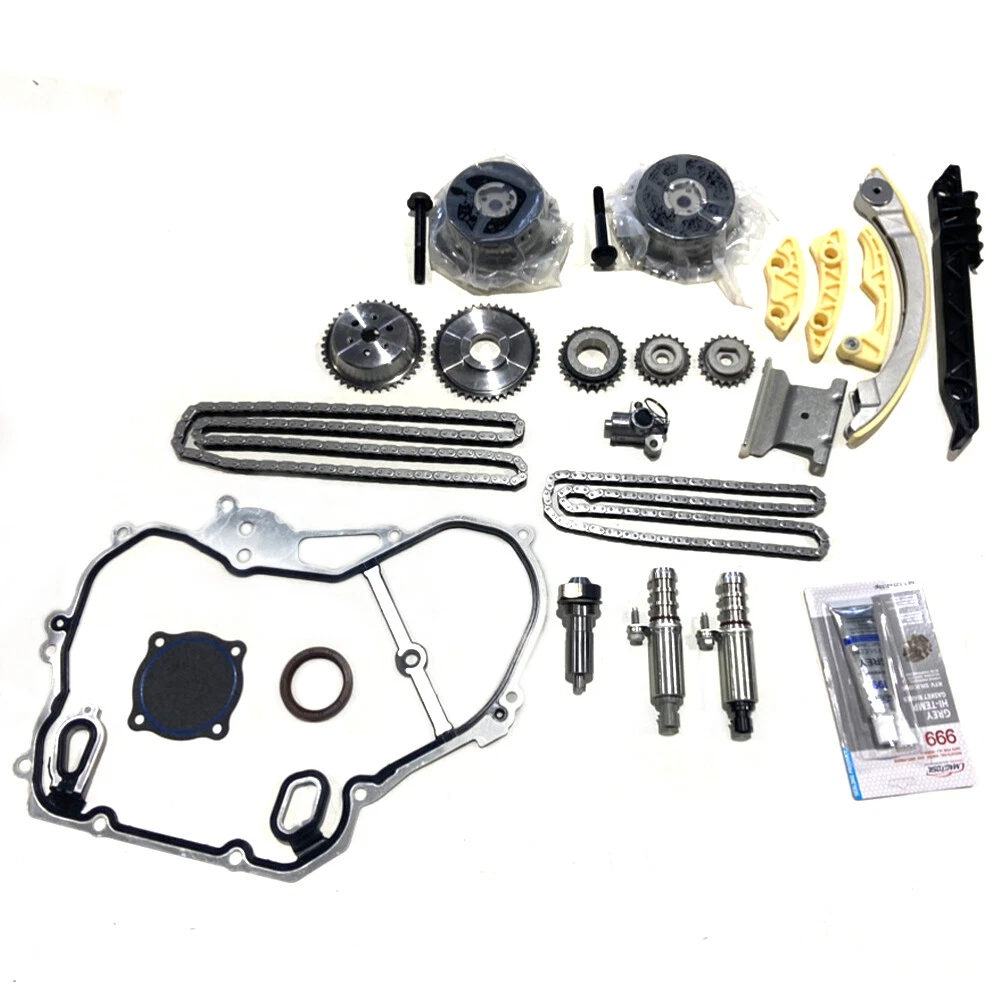 Fits Following Models: 2011 BUICK LACROSSE 2.4L 2384CC 145CID L4 DOHC, (16 VALVE) 2012-2016 BUICK LACROSSE 2.4L 2384CC 145CID L4 ELECTRIC/GAS DOHC, (16 VALVE) 2011 BUICK REGAL 2.4L 2384CC 145CID L4 DOHC, (16 VALVE) 2012-2016 BUICK REGAL 2.4L 2384CC 145CID L4 ELECTRIC/GAS DOHC, (16 VALVE) 2012-2017 BUICK REGAL 2.4L 2384CC 145CID L4 FLEX DOHC, (16 VALVE) 2012-2017 BUICK VERANO 2.4L 2384CC 145CID L4 FLEX DOHC, (16 VALVE) 2013-2015 CHEVROLET CAPTIVA SPORT 2.4L 2384CC 145CID L4 DOHC, (16 VALVE) 2012-2015 CHEVROLET CAPTIVA SPORT 2.4L 2384CC 145CID L4 FLEX DOHC, (16 VALVE) 2012 CHEVROLET CAPTIVA SPORT 2.4L 2405CC 147CID L4 DOHC, (16 VALVE) 2009-2010 CHEVROLET COBALT 2.2L 2198CC 134CID L4 DOHC, (16 VALVE) 2011-2017 CHEVROLET EQUINOX 2.4L 2384CC 145CID L4 DOHC, (16 VALVE) 2012-2017 CHEVROLET EQUINOX 2.4L 2384CC 145CID L4 FLEX DOHC, (16 VALVE) 2009-2011 CHEVROLET HHR 2.2L 2198CC 134CID L4 FLEX DOHC, (16 VALVE) 2014 CHEVROLET IMPALA 2.4L 2384CC 145CID L4 ELECTRIC/GAS DOHC, (16 VALVE) 2013-2014 CHEVROLET MALIBU 2.4L 2384CC 145CID L4 ELECTRIC/GAS DOHC, (16 VALVE) 2011-2017 GMC TERRAIN 2.4L 2384CC 145CID L4 DOHC, (16 VALVE) 2012-2017 GMC TERRAIN 2.4L 2384CC 145CID L4 FLEX DOHC, (16 VALVE) 2009 PONTIAC G5 2.2L 2198CC 134CID L4 DOHC, (16 VALVE) This item includes: 1 Timing Chain (148 links) 1 Tensioner 2 VVT Camshaft Gears (Intake & Exhaust) 1 Exhaust Camshaft Position Actuator 1 Intake Variable Valve Timing Solenoids 1 Exhaust Variable Valve Timing Solenoids 1 Crank Sprocket (23 teeth) 1 Guide Rail (tensioner guide) 1 Guide Rail (left for cam chain) 1 Guide Rail (upper for cam chain) 1 Timing chain balance shaft (134 links) 1 Balance shaft tensioner 1 Crank sprocket (inner - 42 teeth) 1 Balance shaft sprocket (intake side) 1 Balance shaft sprocket (exhaust side) 1 Guide rail balance shaft (upper) 1 Guide rail balance shaft (left) 1 Guide rail balance shaft (right) 1 Timing Cover Gasket Set 1 Silicone Sealant On Nov 26, 2024 at 23:56:19 PST, seller added the following information: