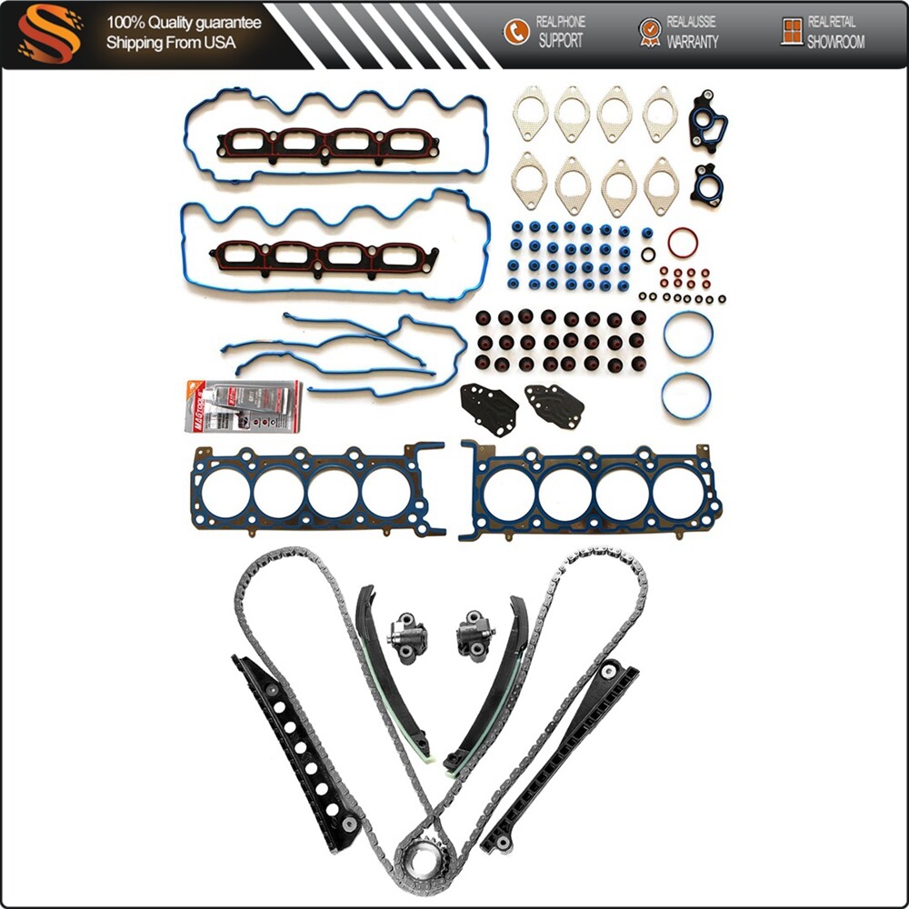 Applications: 2009-2014 Ford Expedition 5.4L 330Cu. In. V8 FLEX SOHC 2007-2008 Ford Expedition 5.4L 330Cu. In. V8 GAS SOHC 2007-2010 Ford F-150 5.4L 330Cu. In. V8 FLEX SOHC 2007-2008 Ford F-150 5.4L 330Cu. In. V8 GAS SOHC 2007-2010 Ford F-250 Super Duty 5.4L 330Cu. In. V8 GAS SOHC 2007-2010 Ford F-350 Super Duty 5.4L 330Cu. In. V8 GAS SOHC 2007-2008 Lincoln Mark LT 5.4L 330Cu. In. V8 GAS SOHC 2007-2008 Lincoln Navigator 5.4L 330Cu. In. V8 GAS SOHC 2009-2014 Lincoln Navigator 5.4L 330Cu. In. V8 FLEX SOHC Package Included: Autodealsparts Timing Chain Kit Head Gasket Set For 07-14 Lincoln Navigator Ford F-150 5.4L Applications: 2009-2014 Ford Expedition 5.4L 330Cu. In. V8 FLEX SOHC 2007-2008 Ford Expedition 5.4L 330Cu. In. V8 GAS SOHC 2007-2010 Ford F-150 5.4L 330Cu. In. V8 FLEX SOHC 2007-2008 Ford F-150 5.4L 330Cu. In. V8 GAS SOHC 2007-2010 Ford F-250 Super Duty 5.4L 330Cu. In. V8 GAS SOHC 2007-2010 Ford F-350 Super Duty 5.4L 330Cu. In. V8 GAS SOHC 2007-2008 Lincoln Mark LT 5.4L 330Cu. In. V8 GAS SOHC 2007-2008 Lincoln Navigator 5.4L 330Cu. In. V8 GAS SOHC 2009-2014 Lincoln Navigator 5.4L 330Cu. In. V8 FLEX SOHC Package Included: x2 Timing Chain (122 links) x1 Crank Sprocket (double row - 21 teeth) x2 Tensioners (left and right) x2 Tensioner Arms (left and right) x2 Guide Rails (left and right) x1 Head Gasket Set Integrated cam sprocket engines (Cam Sprockets/phasers NOT included) (As the picture shown) Additional Information: * These head gasket kit and timing belt kit are just what you need to keep your car in good running order.The head gasket kit and timing belt kit that you will receive in this set are high quality that the dealers and rebuilding shops use everyday. So do not settle for lesser quality parts when it comes to engine repair. * These head gasket kit and timing belt kit are designed for the professional installer. It does not come with any installation instructions. If you do not have a service manual, please consult a professional mechanic prior to installing this kit. * Please refer to the images for an accurate description of the parts included in this listing. Item Specifics Brand AUT Manufacturer Warranty 1 Year Manufacturer Part Number AUT8126410US OE Spec or Performance/Custom OE Spec Interchange Part Number 90391SB,TK6068,TK6054L,HS26306PT-2 Other Part Number 5L3Z-6268-A,F6AZ-6L266-CA,F85Z-6K255-AA,HS54400A,283847 Kit Or Single Part Kit Kit Parts Included Timing Chain, Head Gasket Set,Guide Rail, Crank Sprocket Superseded Part Number 4L3Z-6M256-AA,1L3Z-6L266-AA,2L1Z-6K297-AA,F85Z-6M274-AA,205640 Fitment Type Direct Replacement Payment We accept multiple payment methods Shipping 1. We only ship to confirmed paypal addresses, your paypal address must match your shipping address. 2. All domestic orders will be shipped via USPS, UPS or Fedex from our US warehouse and usually arrives to your door in about 2-7 business days. 3. If you have not received your shipment within 15 days from payment , please contact us. We will track the shipment and get back to you as soon as possible with a reply. 4. Local pick up is not available. Returns All of our brand new items come with a 30-days money-back guarantee. Contact Us If you have any question, please contact us. Warning Please check carefully for the fitment before order, thank you. Autodealsparts DESCRIPTION PAYMENT SHIPPING RETURN POLICY CONTACT US Shop Category Store Home AC Compressor Mirrors Oxygen Sensor Roof Rack Engine Repair Kit Engine Air Intake & Exhaust Tonneau Cover Lawn Mower Accessories Car Tools Truck Bed Storage Box Oil Pump & Water Pump Door Handle Running Board Motor Transfer Case Motor Blend Door Actuator Center Console Armrest Secondary Air Pump Windshield Wiper Motor LED headlight Assembly Dipstick Horns complete struts fog lights Pillar Posts Fuse Holder Box winch Shocks Struts Struts & Suspension Kit & Hubs Window Visors Air suspension valve solenoid Fuel Injector Fuel Pump Throttle Body Window Regulator Turbo Turbocharger Window switch CV AXLE Coolant Overflow Tank Mud Flaps Bumper Side Marker Lights ignition Wing and Spoiler cv-2 Mass Air Flow Sensor-MAF Coilover snorkel kit Jeep lift supports Adj. Control Arm VVT Variable Valve Timing Door Lock Actuator Chainsaw Chain Car Moulding Cover Trim Steering Wheel Hole Adapter Golf Cart Accessories Bug Shield Motorcycle Accessories Ramps Cylinder Piston Gasket Kit Valve Cover Valve Rocker Arm Cylinder Head Cover Crankshaft Drive Clutch Radiator Shutter Garden Water Pump Tire Pressure Sensor Camshaft Hydraulic Lifters Dash Board Cover Fuel Tank Accessories Tensioner Sun Visor Power Steering System RV Third Brake Light Strut Mount Coil Springs Brake System Parts ◈ Brake Calipers ◈ Brake Drums & Brake Shoes Electric Dump Tarp Motor Clock Spring Air Dryer Power Brake Booster Leaf Spring Shackle Kit Other Hot Item Door Handle Interior Right Passenger RH for Chevy GMC Tahoe Suburban Inside USD 12.09 Tailgate Handle Rear Latch Cargo Door Handle for Toyota Pickup 1989-95 Outside USD 9.69 For 2014-2015 GMC Sierra 1500 Chrome Amber Pair Headlights Assembly USD 175.19 For 1997 1998 1999 2000 2001 Honda CRV Factory Style Spoiler Wing w/LED ABS USD 43.19 Roof Rack Rail End Cover Shell Replacement For 03-12 Toyota RAV4 AX30 Wholesale USD 16.91 New List Item For Case IH 1370 1470 1570 2294 2470 2670 4490 4690 A4195 Turbo Turbocharger US USD 120.79 Set of 6 Ignition Coils For Volkswagen Golf 2.8L 2002-2005 UF404 New USD 59.69 For 2013-2015 Lexus ES350 ES300h Black Housing LH + RH LED Headlights Assembly USD 250.99 Fits 2002-2004 Toyota Camry Chrome Headlights Assembly Headlight Corner Pair Set USD 77.49 Remote Car Fob + Key Fits Honda Odyssey 3.5L 2005-2010 OUCG8D-399H-A 4bottons USD 23.09 Picture Picture Picture Timing Chain Kit Head Gasket Set For 07-14 Lincoln Navigator Ford F-150 5.4L Applications: 2009-2014 Ford Expedition 5.4L 330Cu. In. V8 FLEX SOHC 2007-2008 Ford Expedition 5.4L 330Cu. In. V8 GAS SOHC 2007-2010 Ford F-150 5.4L 330Cu. In. V8 FLEX SOHC 2007-2008