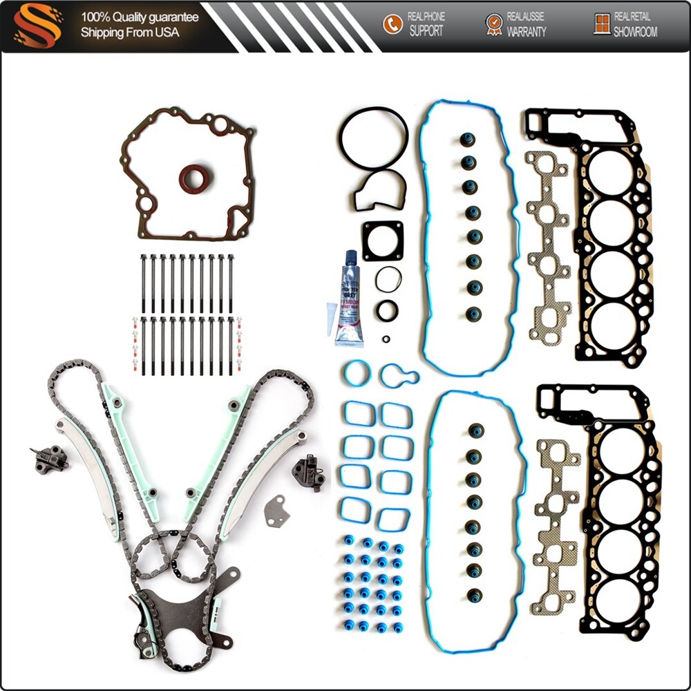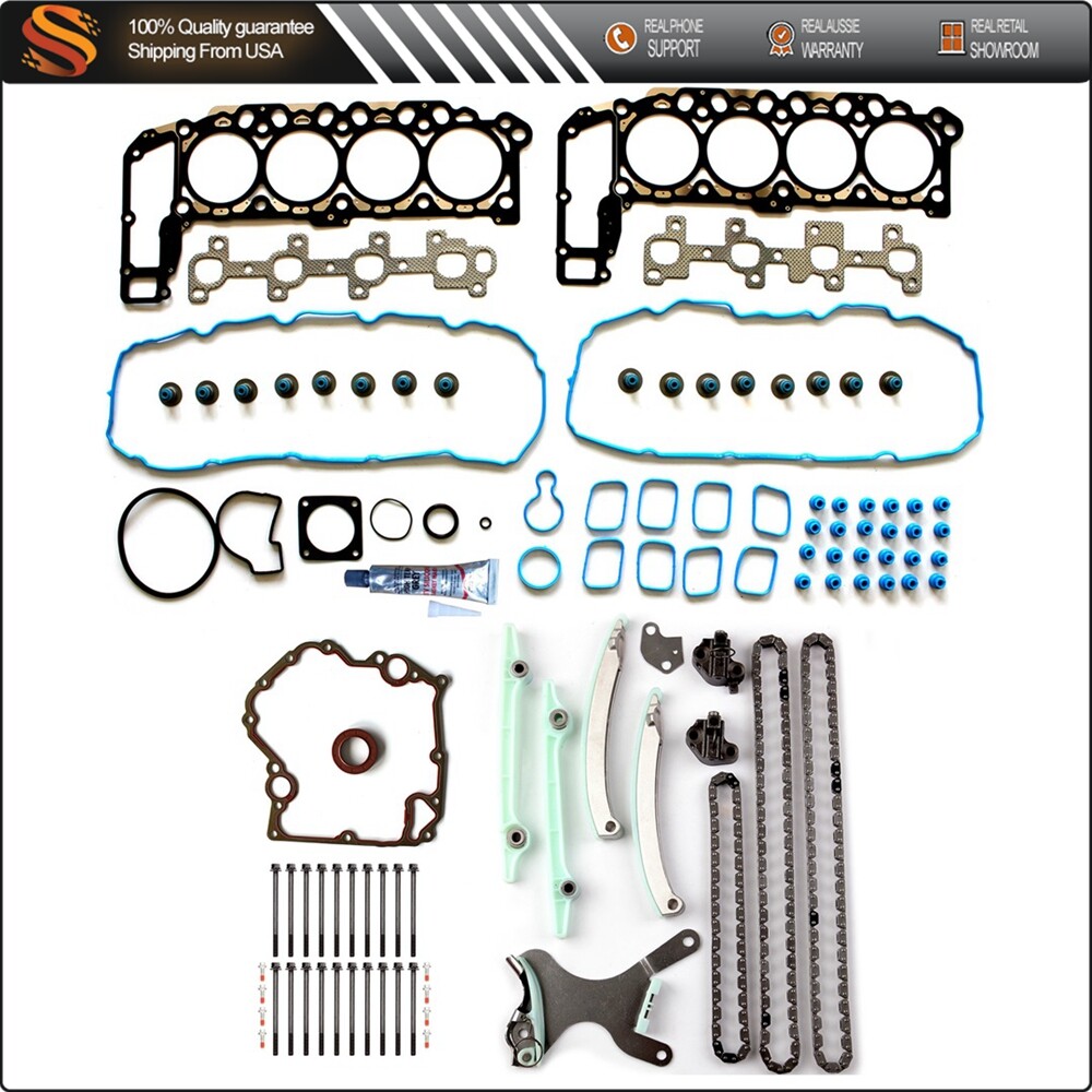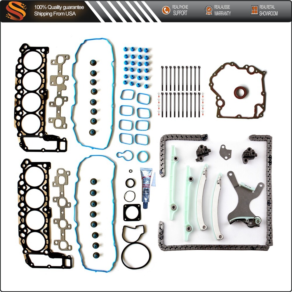 Timing Chain Kit with Water Pump and Head Gasket Bolts for 05-07 Dodge Ram 4.7L 1500