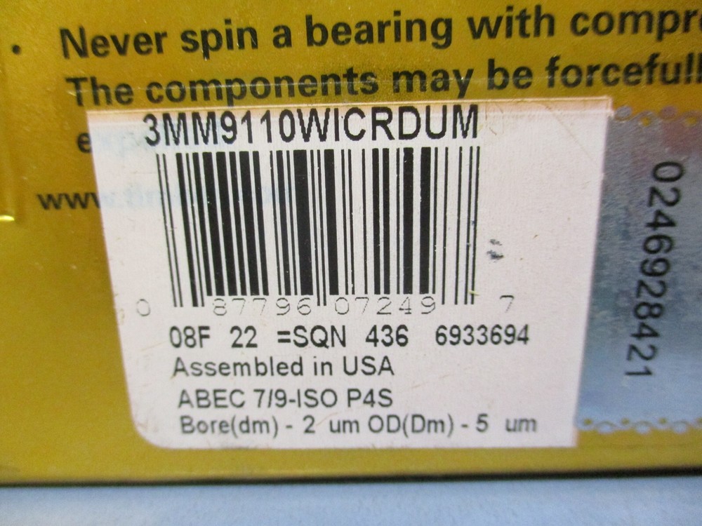 Timken 3MM9110WIDUM For sale is a Timken 3MM9110WIDUM Super Precision Bearing d-2 D-5 7010ECRDUMP4S. The unit is being sold as one box containing two bearings. The unit appears to be new and unused by the previous owner. The unit may show slight signs of cosmetic wear from the previous owner such as scratching, discoloration, shelf wear, paint chipping and/or other markings that should not impact the unit's performance. Overall the unit appears to be in excellent, new, ready to use condition. The unit includes everything shown in photos. Thank you for looking and please let us know if you have any questions. eTech Surplus Rochester, NY Shipping: Charged according to location. Sales tax of 8% will be charged to New York State residents and businesses. We at eTech Surplus strive to honestly and accurately describe each item we sell. Please feel free to contact us with any questions. International Buyers - Please Note: Import duties, taxes and charges are not included in the item price or shipping cost. These charges are the buyer's responsibility. Please check with your country's customs office to determine what these additional costs will be prior to purchasing. International Buyers - Please Note: Import duties, taxes and charges are not included in the item price or shipping cost. These charges are the buyer's responsibility. Please check with your country's customs office to determine what these additional costs will be prior to bidding or buying.