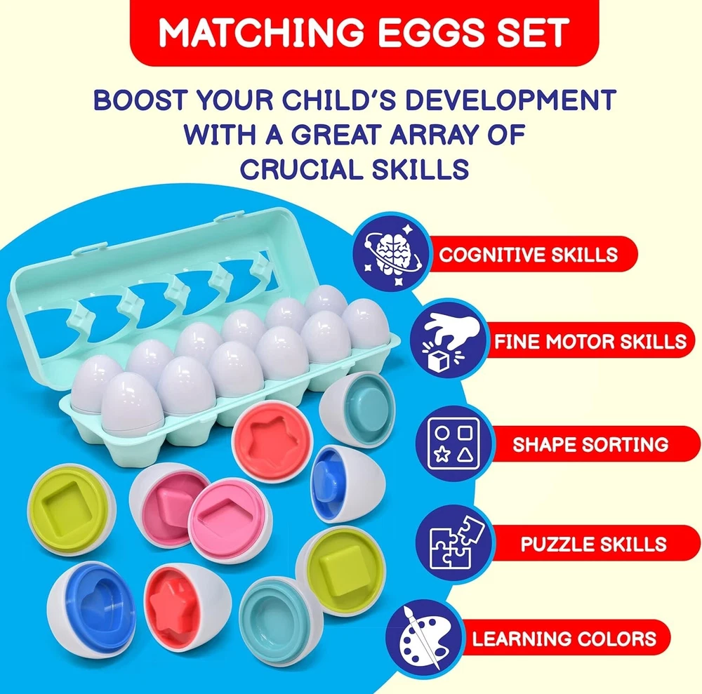 Introduce your little ones to the world of colors with the Tinabless Color Matching Egg Set. This Montessori learning toy is perfect for toddlers between 18-24 months, providing ample opportunities to develop their hand-eye coordination, motor skills, creativity, and language. The set's multicolor eggs with different shapes and matching colors provide a fun and interactive way for your little ones to learn and grow. As a developmental baby toy, the Tinabless Color Matching Egg Set is designed to be gender-neutral, making it perfect for both boys and girls. With its puzzle toy theme, your little ones can enjoy hours of fun and learning, all while developing their cognitive and problem-solving skills. Invest in your child's future with this amazing toy set.