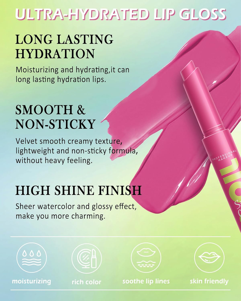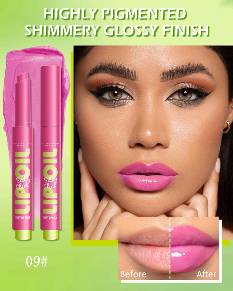 Tinted Lip Balm,Glow Reviver Fat Lip Oil Slick Click,Pink Lipstick Lip Stain Tint, Lightweaight Lip Glowy Balm Lip Gloss,Longlasting Hydrating Lipgloss,Women'S Day Makeup Gift for Women Girl-09 Pigmented Lip Glossy Balm-LYSdefeu fat lip balm in click up unique designs which dispenses just the right amount of balm. Shimmer and high shine for a plumper look, make you feeling moisturized without being sticky, giving your lips a vivid color. Glides on smoothly, leaving a watery glow on your lips, keep your lips soft and moisturize long-lasting. Ultra-comfortable Wear & Care-This high shine lip gloss is available in 9 charming shades for you to choose from, while providing superior moisturizing benefits. It can brighten and moisturize lips and is used to cover lip color and make lips plump. Say goodbye to dry, chapped lips! The highly pigmented, glossy formula plumps lips while delivering a soothing sensation. Lip Product for Pout Lip- Get ready for long-lasting color and shine! Smooth, silky and creamy texture for all day comfort. They leave a jelly-like smooth finish that feels moisturizing but not sticky. Use to plump up sexy lips, prevent dry lips and smooth out lip lines, giving you a silky, zero-gravity feel that lasts. Easy To Use- Please press the bottom according to your dosage, recommended to press 2-3 times per use, dispense 1 mm of product and gently apply smoothly in just one swipe. This lip balm can quickly outline the color, the color is even, and you can easily achieve the effect you want. Ideal Gift- These glow reviver lip balms are vegan, cruelty-free. Perfect as a gift for women for Thanksgiving, Christmas, Valentine's Day, Women's Day, Mother's Day, birthday etc. Product Description Dimensions 2.68 inches x 6.57 inches x 0.67 inches. Weight: 0.63 oz Specifications Color 09 Finish Type High-Glossy Skin Type Oily, Combination, Dry, Normal Item Form Gel Package Dimensions 6.57 x 2.68 x 0.67 inches; 0.63 ounces Shipping: Shipped from the USA. Fast delivery within 2–3 days. Payment: PayPal, credit card, bank transfer. Returns: 30-day free return – we cover the shipping cost. Quality: Made in Europe/USA/China. No customs fees. VAT invoice on request. Feedback: You’ll automatically receive positive feedback after payment.