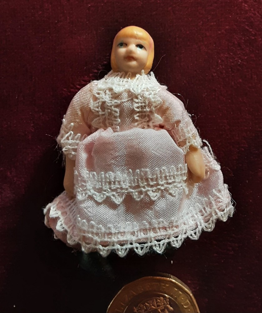 Tiny Porcelain Doll for Dollhouses – Miniature Collectible Figurine