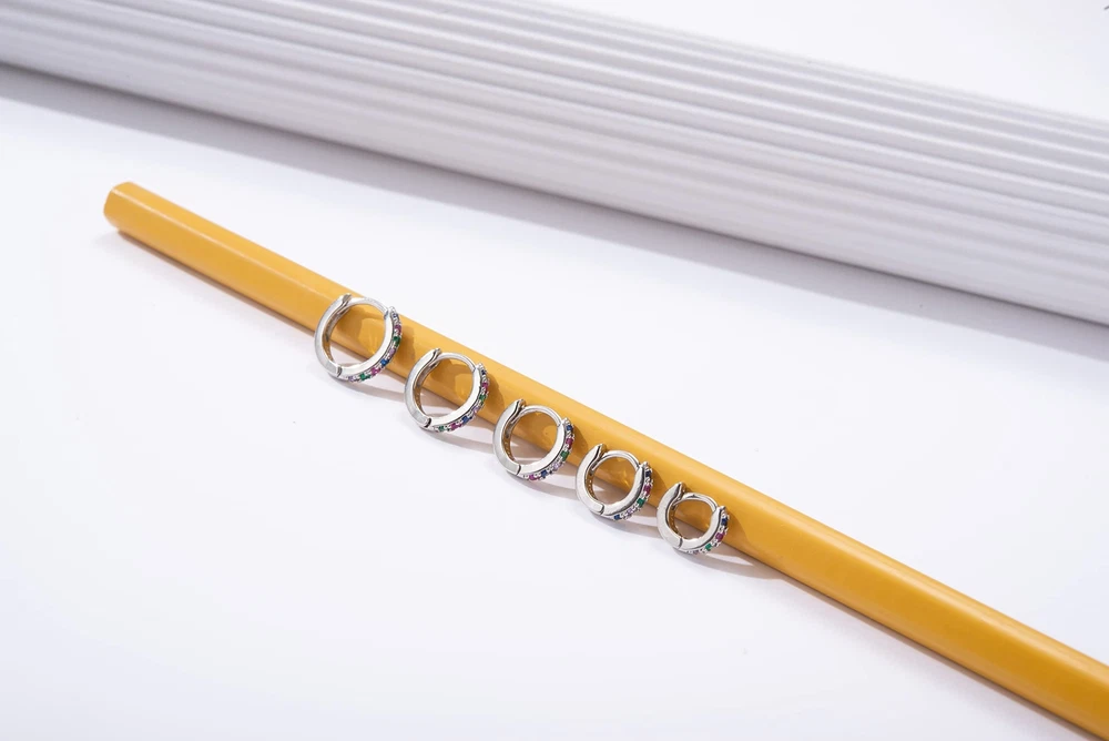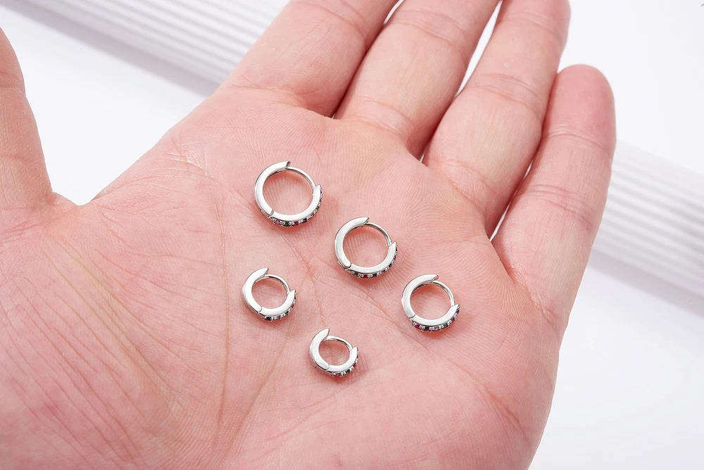 Tiny White Gold Huggie Hoop Earrings 5 Pairs with CZ Sparkle