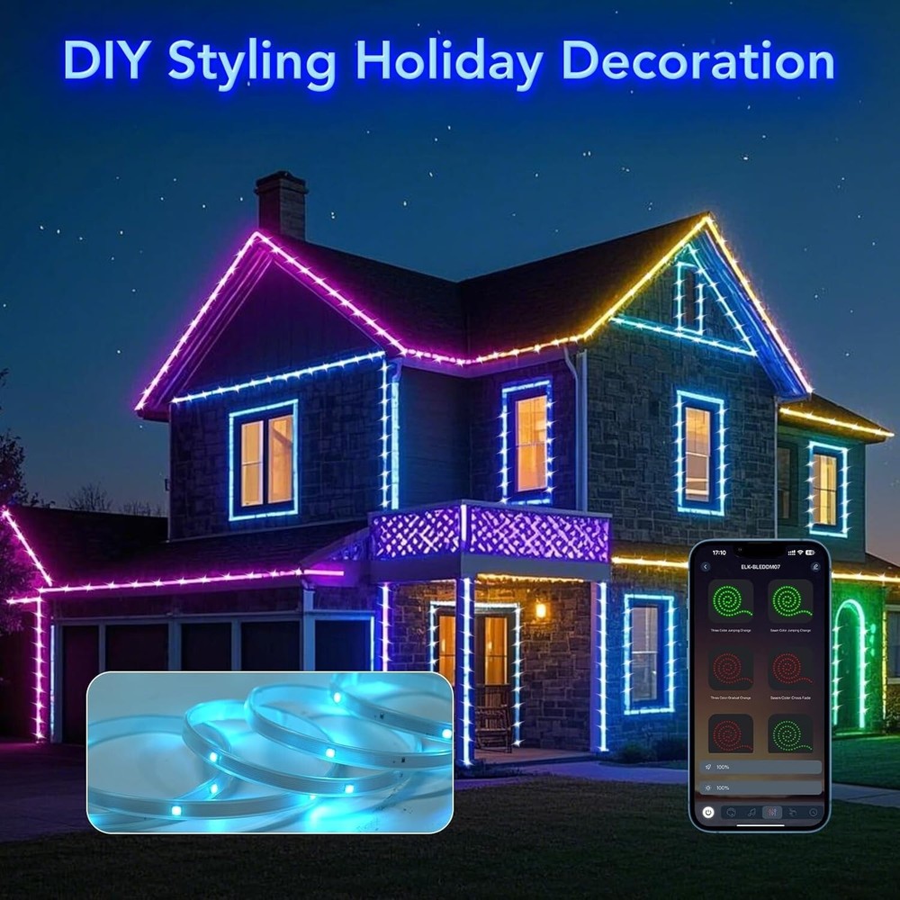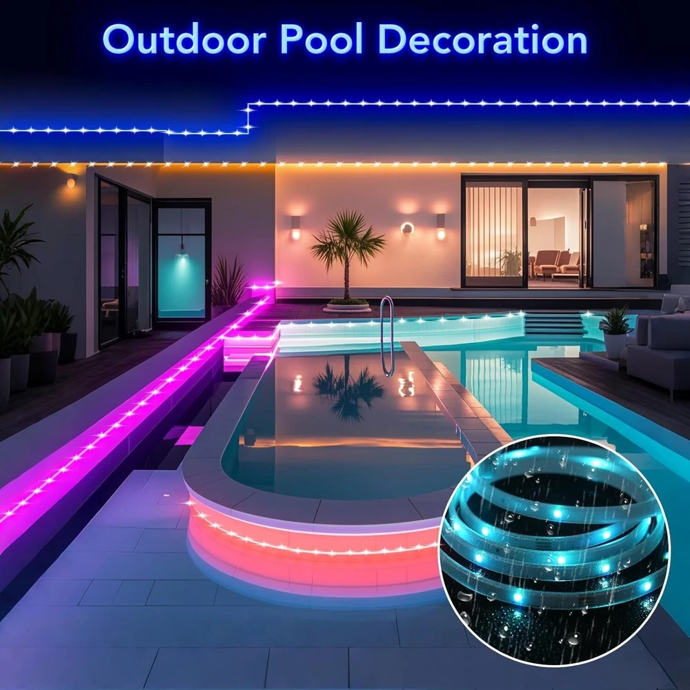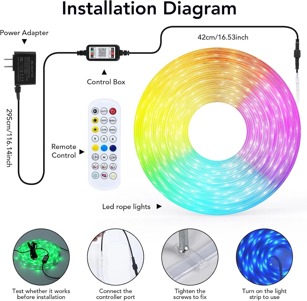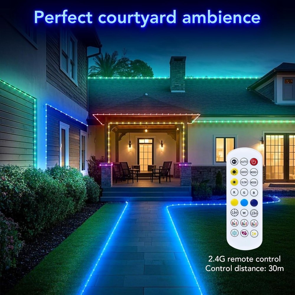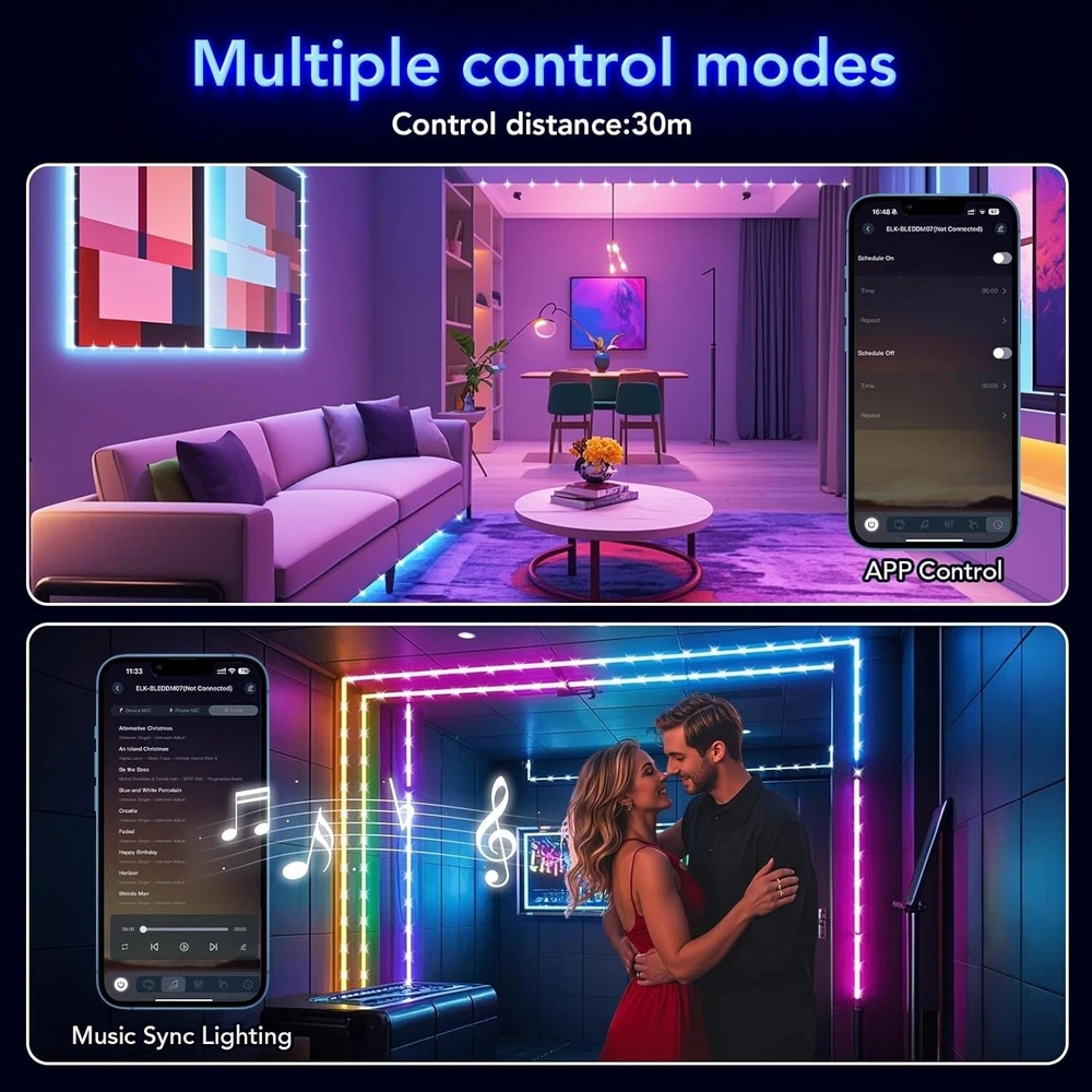 Tira De Led 100FT RGB Luces LED Que Cambian De Color Para El Hogar Cocina NUEVO. Fácil de instalar: la tira de luz LED viene con un fuerte respaldo adhesivo que se puede instalar en cualquier lugar seco, simplemente retire el papel y péguelo, con el fuerte adhesivo no tiene que preocuparse de que la tira de luz LED se caiga. Temporizador: con la función de temporizador, las luces LED para dormitorio de 100 pies pueden encenderse y apagarse automáticamente, puede configurar la hora de activación y la hora de finalización para encender / apagar los LED con temporizador automáticamente, lo que lo pone de buen humor todos los días. Aplicación y control remoto: puede usar el control remoto y la aplicación para controlar las luces RGB, eligiendo libremente multicolor y diferentes modos (como Flash, Jump, Fade, etc.), realzando la belleza de la decoración de su habitación. Múltiples rollos idénticos de tiras de luz LED con control remoto se pueden controlar con el mismo control remoto. Sincronización con la música: Estas luces de ambiente cambian de color al ritmo de la música, llevando tu fiesta al máximo, iluminando tu vida y haciéndola más colorida y especial. Ampliamente utilizado: Las luces LED de 30 m para habitación son lo suficientemente largas, ampliamente utilizadas en días festivos y fiestas.