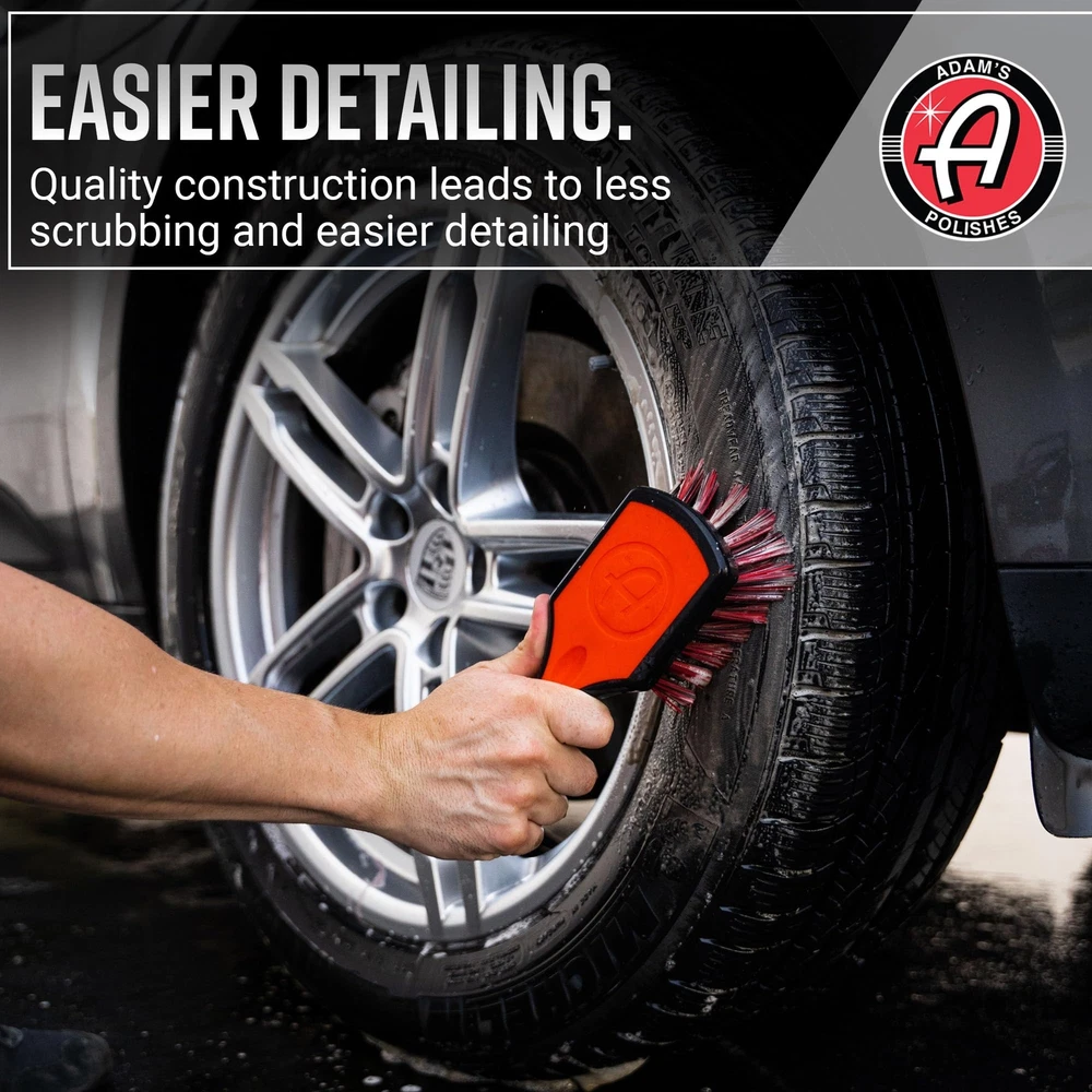 ✅ HIGH-QUALITY DETAILING BRUSH – At Adam’s, we are constantly testing, tweaking, and improving our products. Every detail in this custom crafted tire detailing brush was carefully assessed - the grip of the handle, soft chemical resistant bristles and even the rubberized head. This brush was crafted for comfort, effectiveness, and maximum cleaning power every wheel car wash! ✅ SHORT HANDLE SCRUB BRUSH – Adam’s Tire Brush was made to withstand some of the toughest detailing or cleaning jobs. This detailing tool is a great addition to your car wash kit or your car cleaning chemicals and accessories. Every time you clean your vehicle, boat, bike, motorcycle RV, car, household, and garage, our brush will effectively prove its versatility and durability. ✅ STIFF, DURABLE & CHEMICAL RESISTANT BRISTLES FOR EFFECTIVE SCRUBBING – Adam’s Tire Brush was constructed to be used with Adam’s Tire & Rubber Cleaner or All-Purpose Cleaner. To thoroughly remove antiozonants, mold release agents, or general oxidation, utilize this brush with Adam’s Tire and Rubber Cleaner to scrub the grime away and watch how your tire becomes an orange/brown color as you restore it. ✅ USE WITH ADAM’S TIRE RUBBER CLEANER, WHEEL AND TIRE CLEANER or ALL PURPOSE CLEANER - Adam’s has several chemical cleaning supplies that can be paired with our Tire Brush for use on tires, rubber floor mats, or plastic floor liners. Although this brush can be used like a wheel brush, we suggest not using it as a wheel cleaning brush as the rigid bristles increase potential scratching on your wheel finish. To clean the face of your wheels, use Adam’s Wheel Scrub brush and Adam’s Wheel Woolie! ✅ 110% SATISFACTION GUARANTEE & USA MADE - At Adam’s, we strive to bring the BEST detailing tools, kits, waxes, sealants, ceramic coatings, car accessories, microfiber towels, wash mitts, sponges, applicators and other high-quality car cleaning products to our customers. If you don’t agree & are not satisfied, let us know and we’ll do everything we can to make it right!