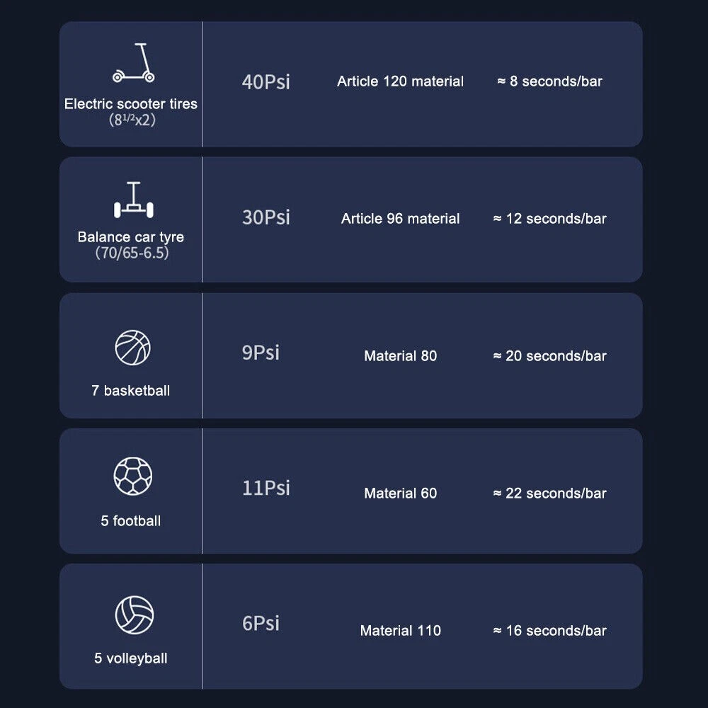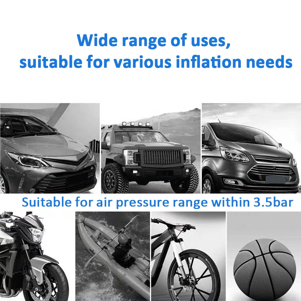 Please Note: This is NOT a rechargeable tire inflator and does NOT come with a USB cable. It must be powered via the Cigarette Outlet. Features : [FAST INFLATING SPEED and EASY TO USE] Simply plug this auto tire air compressor into the 12V power outlet and attach the hose to the tire you wish to inflate. You can just flip the switch, then shut it off once the tire pressure hits your desired number. [11.5 FEET-LONG RANGE] Besides, the 11.5 ft power cable is long enough to reach all the tires easily. A long cable eliminates needs to unplug it each time. [4 Extra Nozzles] Our tire pump has 4 extra nozzles which allow to inflate all types of tire, such as car, motor, ATV, or midsize SUV, sports equipment and inflatables adaptors included. Perfect for your inflatable boats, balls and other inflatables. [Compact Size Tire Inflator] Keeps pumps handy to fix a flat or inflate air mattresses when you travel away from home. Specification Package Content Power Source 12 Volt Digital Air Compressor(Tyre Inflator) 1 Power 120W Fuse 1 Material ABS Plastic & Heavy Duty Metal Additional Nozzles 3 Display Unit PSI User Manual 1 Pressure 150 PSI DC Power Cord (Cigarette Outlet ONLY) 1 Flow rate 35L / min Cable length 11.5ft (3.5m) Noise level <50db Continuous work time: 10 min Shipping Method: -Paypal is the only payment method accepted through our eBay store We provide Prioity Shipping service, which takes 2-3 business day to be delivered, for additional fee. -Usually the orders will be delivered in 4-10 business days Contact us: Please contact via eBay message. And your message will be replied within 1 business days. For any queries, please feel free to contact us, we will get back to you as soon as possible. If you have any problem of the item, please feel free to let us know before leaving your feedback. We will try our best to solve your problem.