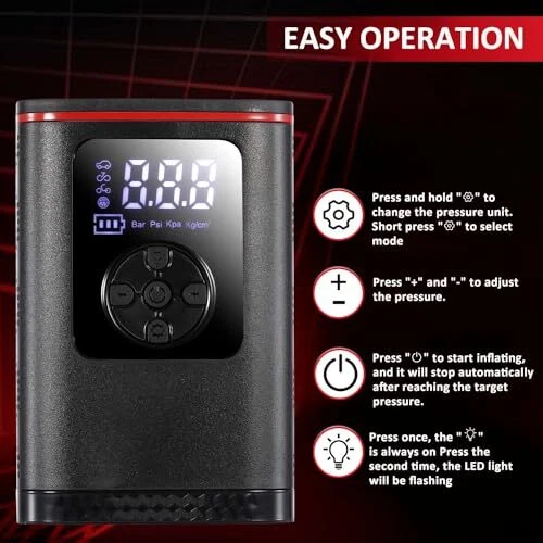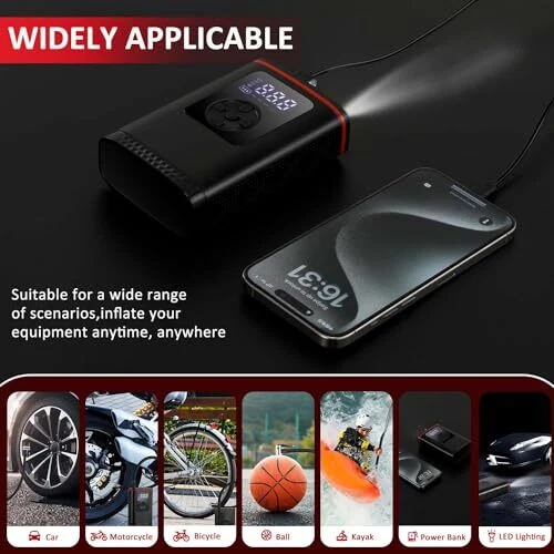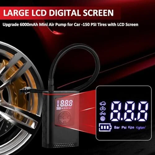 Return Policy Fast Delivery Trusted seller Tire Inflator Portable Air Compressor- 150 PSI Cordless Tire Pump with 6000mAh Battery/Auto Stop/Emergency LED Light/Power Bank Function, for Car Bike Motor Ball Product Description ?【LCD DIGITAL DISPLAY & AUTO SHUTOFF】The Digital Tire Inflator has a large LCD digital display screen with 4 pressure measurement units- PSI, KPA, BAR, KG/CM². Real-time reporting of accurate data to know tire pressure at a glance! It also provides you with rest-assured using experience based on the auto shut off function at the desired level. T is no need to worry about over inflating, smart portable inflator for tires got your back! ⚽【QUICK AND EFFICIENT INFLATING】Portable air compressor for car tires is a great solution for emergencies on the way. It provides 15L/ MIN of airflow. Perfect for inflating cars, motorcycles, bicycles, balls, swim rings, and other inflatable items.【Note: Not to inflate the tires of trucks, buses, vans, etc.】 ?【BRIGHT LED LIGHT】We also considered the use at darkness! The LED lights provide illumination in low-light conditions, making it easier to inflate tires or other objects during nighttime or in dimly lit environments. ⛽【POWER BANK】6000Cordless tire pump not only charges the car port, but can also be used as a portable battery to charge your cell phone or other electronic devices, ensuring that you are always connected even when you are on the go. ?【PORTABLE TIRE INFLATOR】Portable air pump features a compact, cordless design that allows you to easily take it with you anyw you go. Its compact size fits easily into your car tool box, bike rack, backpack and pocket. Inflate anytime, anyw! Shipping Returns Payment Shipping Shipping is FREE to all addresses other than APO/PO boxes in the lower 48 states. All our stock ships from US-based warehouses. Shipped via USPS or UPS (depending on location and package weight) Unless stated otherwise, all orders will ship within 24-72 hours of your payment being processed. Check our feedback to see the great reviews of FAST shipping we offer. Returns Seller does not accept returns Payment We currently accept payment via eBay managed payments only. Once payment is cleared, we will dispatch your shipment within 1-3 business days. Please refer to the "Shipping" tab for more information regarding shipping speed to your destination.