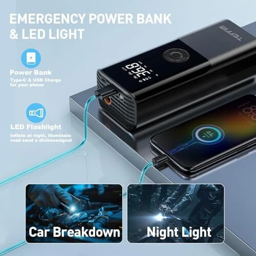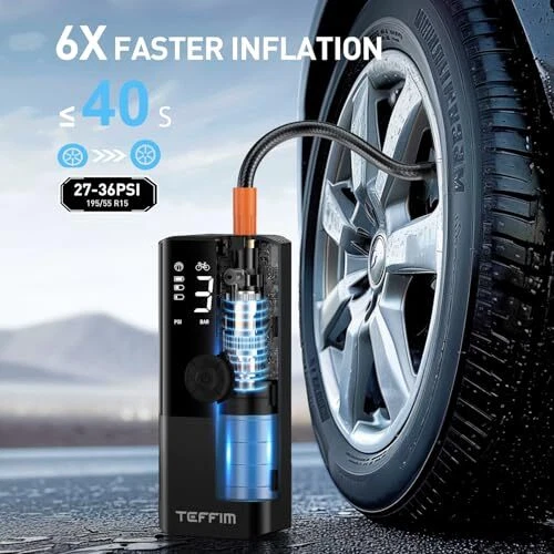 Return Policy Fast Delivery Trusted seller Tire Inflator Portable Air Compressor - 150PSI & 20000mAh Battery, 12V Smart Air Pump for Car Tires, 6X Tire Pump with Pressure Gauge, Auto Shut-off, Motorcycle, SUV, Bike Pump, Bicycle, Balls Product Description Upgraded powerful & long-lasting battery: Portable tire inflator for car is equipped with 20,000 mAh rechargeable battery, inflate 6X faster than others air pump, extend the service life by 3 times, from 32 PSI to 36 PSI in 40S. With a single full charge, you can inflate six 195/55/R15 car tires (0-36 psi), and the battery can remain standby for more than 365 days. Say goodbye to the problem of fast battery drain, low power, and frequent charging. Large Screen& Precise Pressure: This tire pump is equipped with next-generation high-precision sensors and dual LCD displays that display real-time and preset pressure values. Car air pump is switch between four units (psi, kpa, bar, and kg/cm²) with ±0.2 PSI to ensure correct tire pressure and improve safety. When the required pressure is reached, the auto-shut-off function stops inflation and prevents over-inflation. Five Modes Tire Inflator: The powerful cordless portable air compressor allows you to customize car, motorcycle, bike, sport ball, basketball, and manual modes and presets, simplifying operation and eliminating duplicate settings. It is equipped with four different inflatable valves to meet a variety of inflating needs, making it ideal for car tires, motorcycle tires,bicycles,ball. Two Inflation Method: The air compressor portable is equipped with 9.8-foot DC 12 V power cord and a USB charging cable that provides two ways to inflate. Inflate directly with the tire inflator pump battery or with a DC 12 V cable in the event of outdoor emergency using the vehicle's power supply. A must-have for car users,choose air pump as your first choice for family, friends, men, women. Fast Charging& LED Lights & Portable Power Bank: Portable air compressor has 2 modes of ultra-bright LED lights, SOS and flash to help with tire inflation and dark conditions. It can be used as an emergency car device in travel, in the field, and at work, to inflate tires and an emergency power supply for phones. Its compact size makes it ideal for storage in your car,bike rack,backpack. Shipping Returns Payment Shipping Shipping is FREE to all addresses other than APO/PO boxes in the lower 48 states. All our stock ships from US-based warehouses. Shipped via USPS or UPS (depending on location and package weight) Unless stated otherwise, all orders will ship within 24-72 hours of your payment being processed. Check our feedback to see the great reviews of FAST shipping we offer. Returns Seller does not accept returns Payment We currently accept payment via eBay managed payments only. Once payment is cleared, we will dispatch your shipment within 1-3 business days. Please refer to the "Shipping" tab for more information regarding shipping speed to your destination.