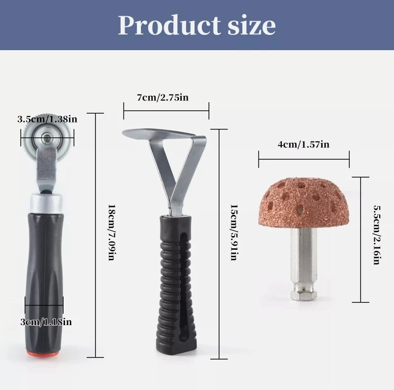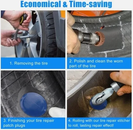 Product Features High Performance Feature: Our Tungsten Buffing Wheels are crafted with premium tungsten alloy, a wear-resistant material that ensures exceptional durability and extended service life. Superb Craftsmanship: Our Tire Buffing Wheels, Tungsten Steel Buffing Wheel, Low-speed hexagonal connecting rod, high-speed circular connecting rod, and Scraping Cutter are meticulously crafted to meet a range of needs. The versatile combined set offers practicality and wider applicability. Size Details: The tungsten buffing wheel has a diameter of approximately 42 mm/1.65 inches, while the tire patch roller measures about 7 mm/0.28 inches in thickness and 18 cm/7.09 inches in overall length. Easy Installation: Effortlessly install our tungsten steel polishing wheel to efficiently roughen tires, enabling fast grinding and saving you time and effort during tire repairs. The Tire Patch Rollers Wheels feature a combination of plastic and metal construction, designed to roll down inner tube and tire repair patches to eliminate trapped air. Widely Applicable: Our tire repair tools are designed for rolling tire and tube patches, ensuring secure adhesion during tire repairs. These tools find extensive applications in auto beauty maintenance and beyond. How To Use 1️⃣ Remove the tire and clean it. 2️⃣ Polish and grind the worn areas of the tires 3️⃣ Apply glue evenly and fill in the tire repair patch 4️⃣ Rolling with tire patch roller for adhesion and sealing Product Specification The Liner Scraper Material Metal + Rubber Size 15cm x 7.4cm/5.91" x 2.91" (Approx.) Tire Repair Buffing Wheel Material Tungsten steel Dimensions 1.65in/ 42mm in diameter, Hexagonal Rod Tire Patch Roller Material Plastic, alloy steel Dimensions 7mm/0.28 in(Thickness) and 18cm/7.09 in(length) Package Included 1 x Tire patch roller 1 x Liner Scraper 1 x Tire repair buffing wheel