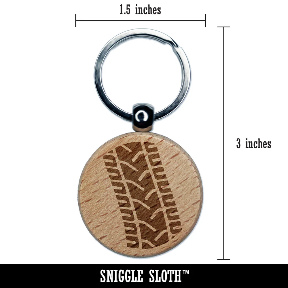 Tire Tread Track Engraved Wood Round Keychain Tag Charm