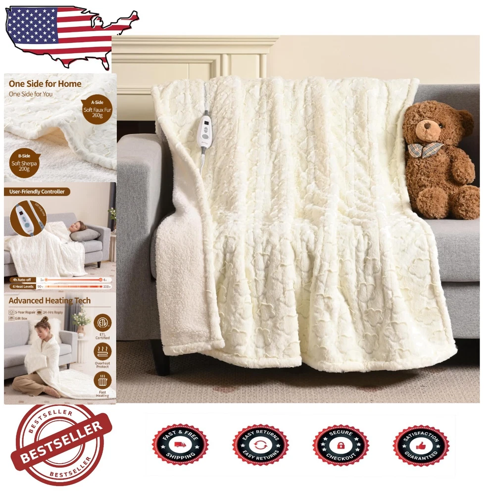 Ultra Soft Heated Throw with Gift Box - 6 Heat Levels & Floral Design 50"x60" ‹ › ‹ › ‹ › ‹ › ‹ › ‹ › ‹ › ‹ › ‹ › ‹ › Ultra Soft Heated Throw with Gift Box - 6 Heat Levels & Floral Design Indulge in an unparalleled experience of warmth and elegance with our Ultra Soft Heated Throw. Perfect for staying cozy on chilly evenings, this luxurious blanket is designed to envelop you in comfort while enhancing your home decor. Features: Luxurious Floral Faux Fur and Sherpa Design: A stunning floral faux fur front paired with a sumptuously soft sherpa reverse creates a plush and inviting surface. 6 Heat Settings with Adjustable Temperature: Easily customize your warmth with settings ranging from 90 to 108℉ to suit your personal comfort. Auto Shut-Off and ETL Certified for Safety: Built-in 4-hour auto shut-off feature ensures safety and energy efficiency, giving you peace of mind. Machine Washable: Easy to clean for a fresh and hygienic experience, requiring minimal effort. Thoughtfully Designed Gift Box: Comes beautifully packaged, making it an ideal gift for those who cherish warmth and sophistication. No-Worry Purchase: Our 24/7 customer service is here to assist you with any quality concerns for up to 5 years. Benefits: Luxurious comfort and warmth to elevate your relaxation experience. Elegant floral design enhances any room, making it a chic addition to your home. Personalized temperature settings for ultimate coziness. Safe to use with reliable auto shut-off features. An exceptional gift that shows you care, beautifully packaged for your loved ones. Why choose our Ultra Soft Heated Throw? Step into a world of luxury with our Ultra Soft Heated Throw, designed not only for warmth but for an aesthetic upgrade to your home. With its exquisite floral design, 6 customizable heat levels, and unmatched softness, you'll find yourself wrapped in elegance. Whether for yourself or as a thoughtful gift, this throw blanket promises to deliver comfort, style, and safely every time you need it. Don't let the cold weather catch you off guard; indulge in the warmth of a Electric Blanket today! Shipping Free & Fast Shipping - We offer free shipping to most of the USA with a normal delivery time of 3-7 days. However, due to the current situation, additional delivery time (up to 3 weeks) may be required for some items. Alternative Carriers - We may use alternative carriers (e.g. USPS, FedEx, UPS, etc.) to ensure your package arrives safely and on time. Due to the use of multiple carriers, we are unable to provide a tracking number automatically. Handling Time - Orders are processed and shipped within 1-2 business days of receiving cleared payment. Shipping Restrictions - Shipping to Alaska, Hawaii, Puerto Rico, Guam, and other US territories may incur shipping charges or delivery restrictions. Please contact us before ordering, or your order can be refunded/cancelled. State Restrictions - There may be restrictions based on your state of purchase. For example, certain items may not be shipped to California due to state regulations. Contact for Tracking Updates - If you require tracking updates or have any concerns about the delivery of your order, please feel free to contact us, and we will be happy to assist you. Return 30-Day Hassle-Free Returns - We want you to be completely satisfied with your purchase. If you are not, you can return the item within 30 days of receiving it for a full refund or exchange. Easy Return Process - To start a return, simply contact us and we will provide you with a prepaid return shipping label and detailed instructions. Restocking Fee - There are no restocking fees for returns. However, the buyer is responsible for return shipping costs if the return is not due to a seller's error. Refund Processing Time - Refunds will be processed within 5 business days of receiving the returned item in its original condition. Payment We accept all major credit cards, PayPal, and Apple Pay for your convenience. Your payment information is secure and encrypted to ensure a safe and seamless transaction. Please complete your payment within 3 days of purchase to avoid any delays in shipping. Feedback Your feedback is extremely important to us. We strive to provide the best products and customer service possible. If you are satisfied with your purchase, please take a moment to leave us a positive review. If you have any concerns or issues with your order, please contact us before leaving negative feedback. We are committed to resolving any problems and ensuring your satisfaction. Contact Us If you have any questions or concerns, please feel free to reach out to our customer support team. You can contact us through the eBay messaging system. We are available Monday to Friday, 9:00 am to 5:00 pm EST, and we will do our best to respond to your inquiry within 24 hours. Buy it now and enjoy a pleasant shopping experience! UPC: Not Set Item Length: Not Set Item Width: Not Set Unit Quantity: 1 Material: Faux Fur,Sherpa Features: Heated,Auto Shut-Off,4h Auto-Off Timer,6 Heating Levels,Ultra Soft Theme: Floral Character: Not Set Care Instructions: Machine Wash Department: Kids,Teens,Adults Room: Bedroom,Living Room Labels & Certifications: Not Set Brand: Unbranded Size: 50 x 60 in Type: Electric Throw Blanket Character Family: Not Set Color: White Pattern: Floral Style: Modern MPN: Not Set Country/Region of Manufacture: Not Set Insulation: Warm Shape: Rectangular Closure Type: No Closure Product Line: Not Set Drop Length: Not Set GSM (Grams per Square Meter): Below 150 Model: Not Set Thread Count: 200 or Less Unit Type: Unit Personalize: Not Set