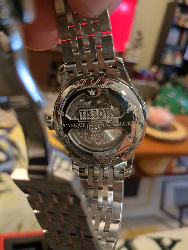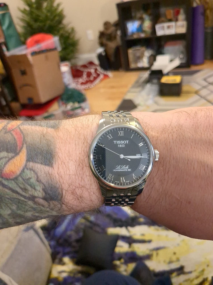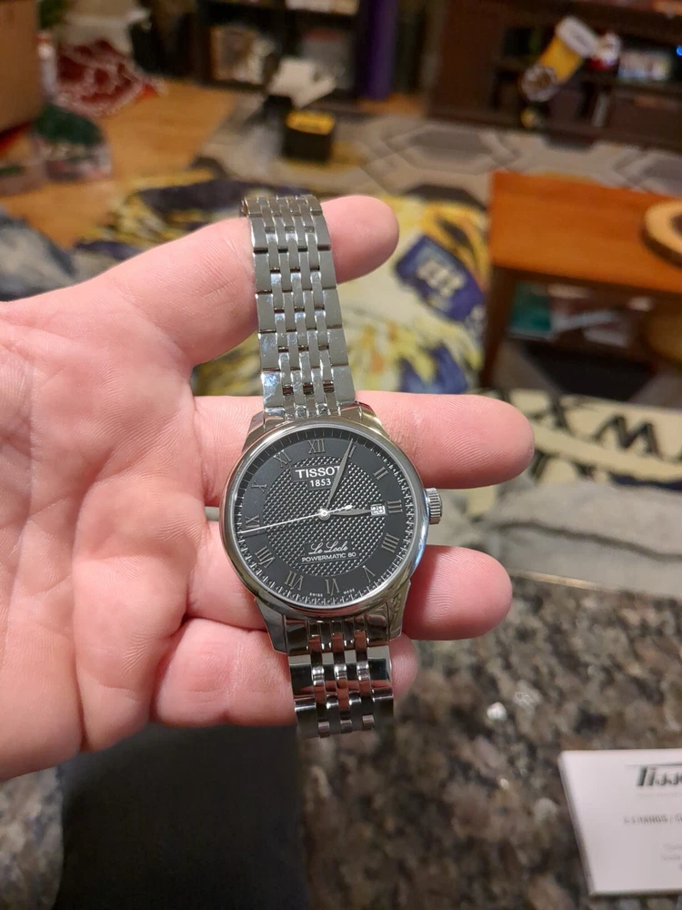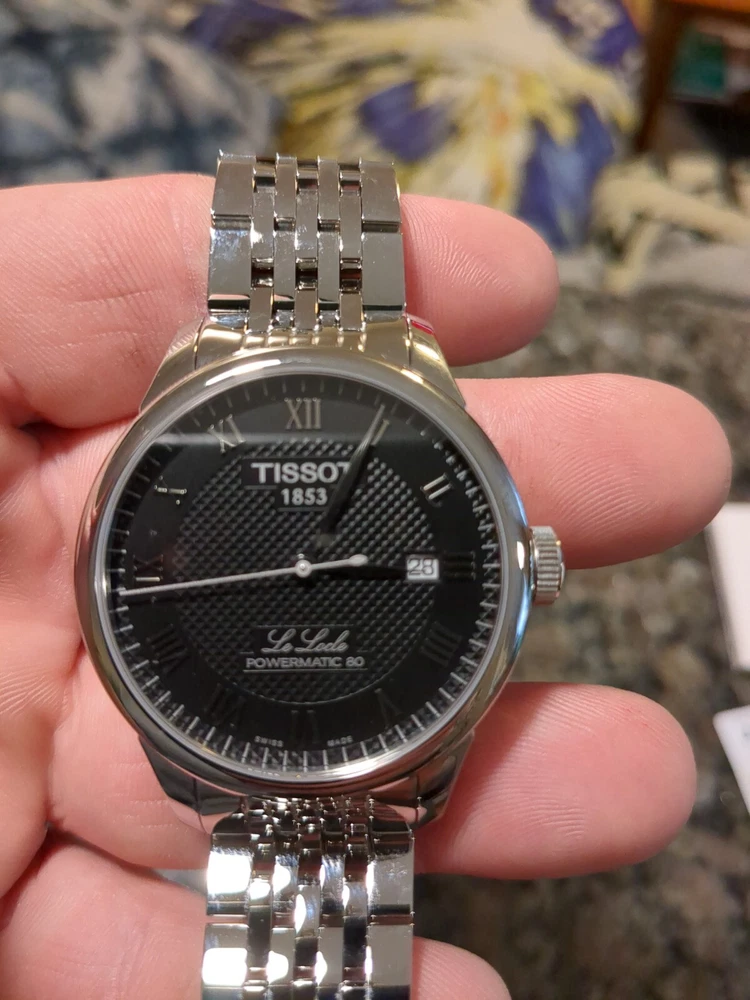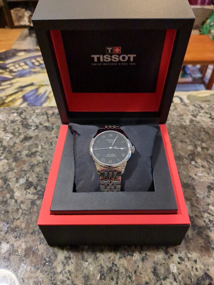 Enjoy this pre owned but in mint condition Tissot Le Locle Powermatic 80. This watch is a men's 39mm dress watch with a black dial