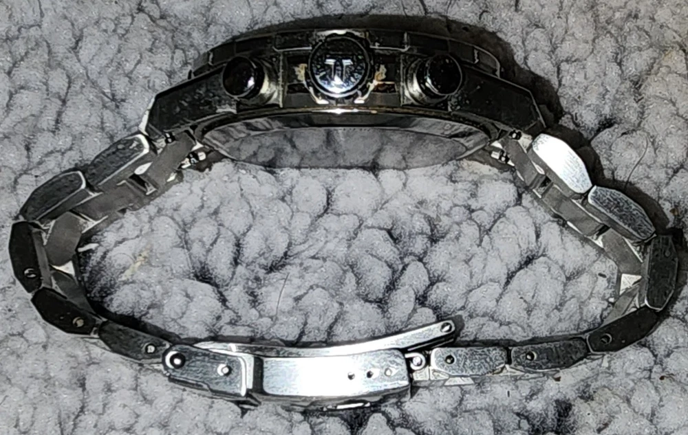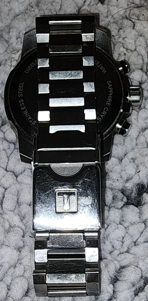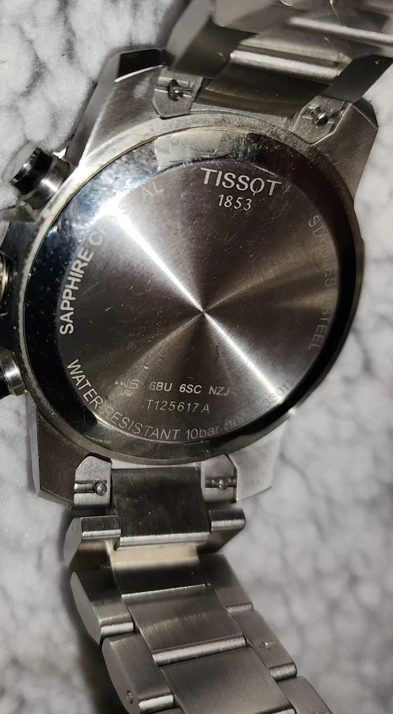 This Tissot Supersport Chronograph Quartz Men's Watch T125.617.11 has a sleek and sporty design that is perfect for the modern man. The black dial features luminous hands and multi-dial functions including a date indicator, all protected by scratch-resistant sapphire crystal. The fixed tachymeter bezel adds a touch of elegance to the gray case, which is made of durable stainless steel. This watch is water-resistant up to 100 meters and comes with a fold-over safety release clasp. The bracelet is also made of stainless steel and has a buckle closure, suitable for left-handed men. This Swiss-made timepiece is powered by quartz movement and features a chronograph function. Although it does not come with original box/packaging or manual/booklet, it does come with a seller warranty for added peace of mind. Perfect for the man who loves sport and style, this Tissot Supersport Chronograph Quartz Men's Watch is a must-have accessory. Will need a new battery!!