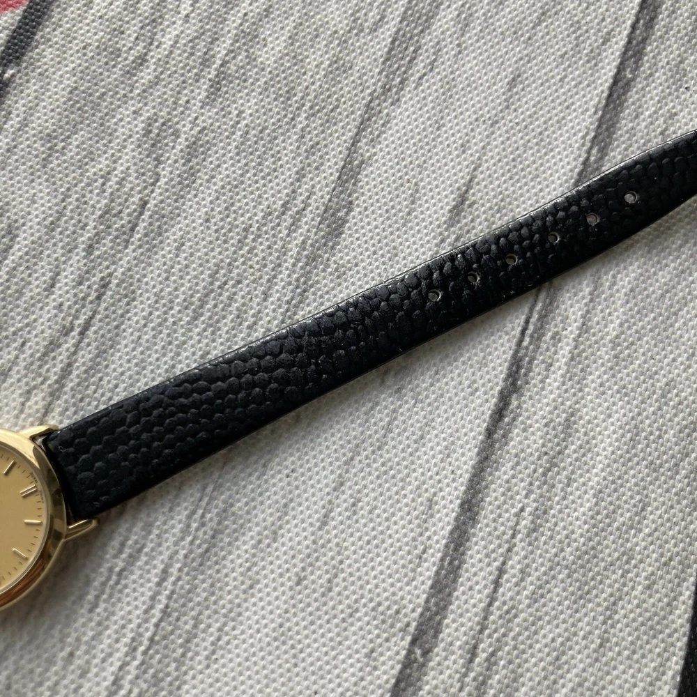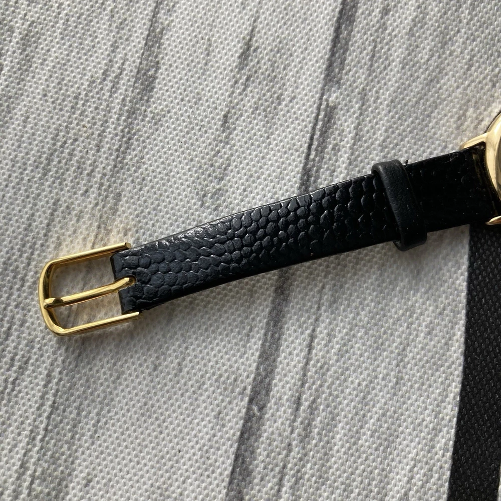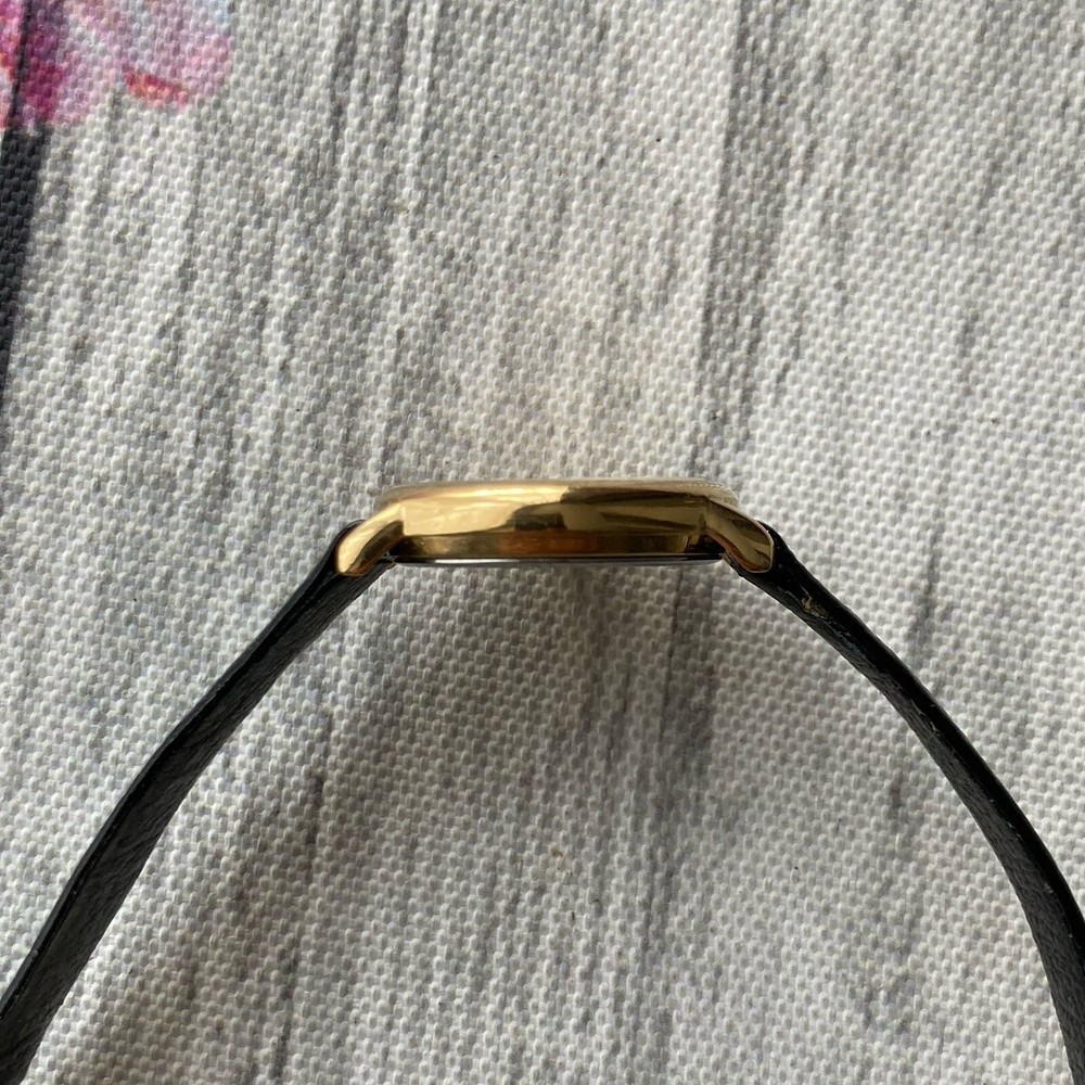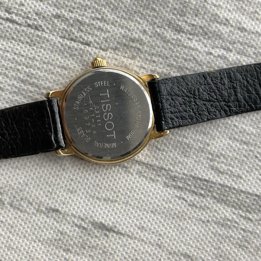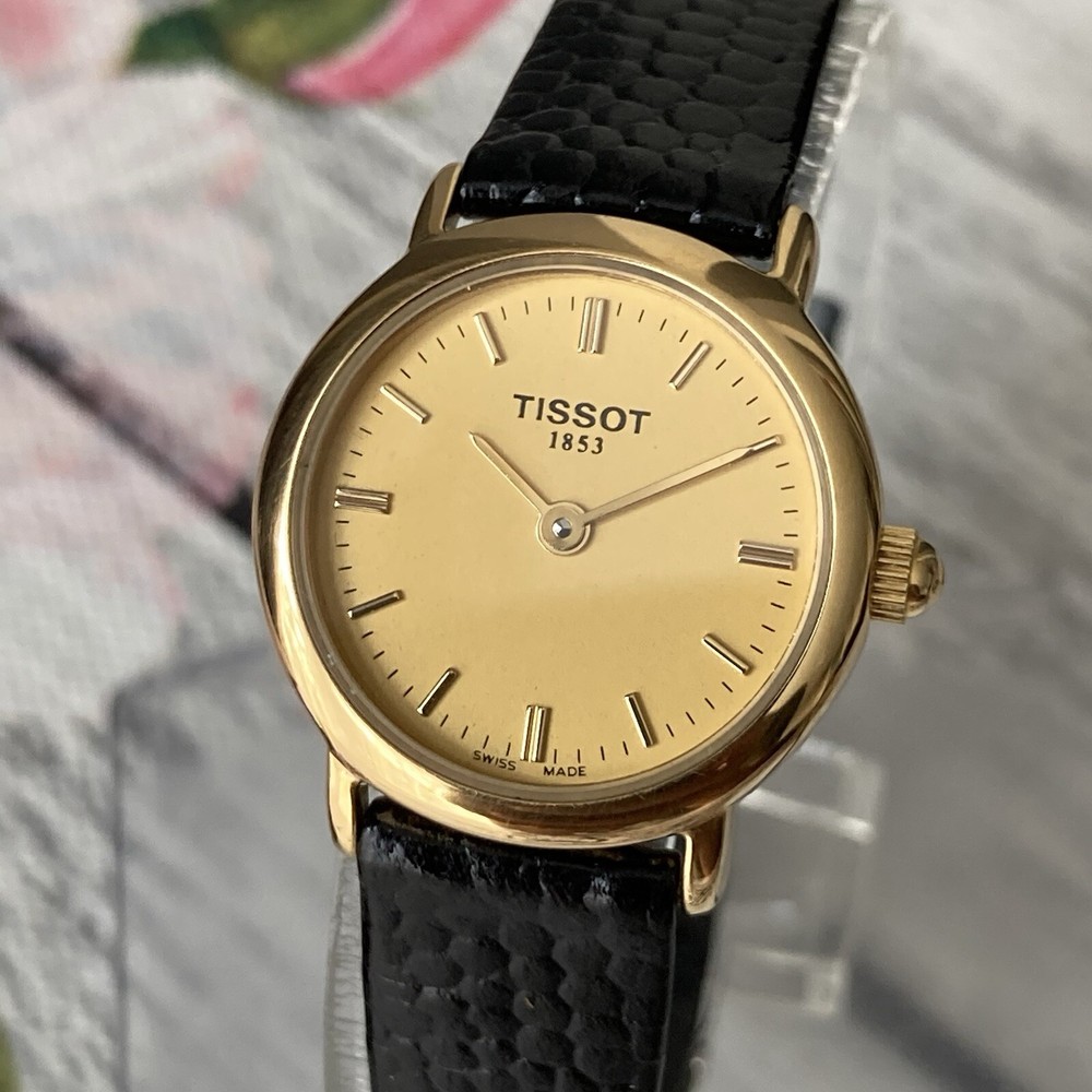 Tissot Watch Swiss Made Ladies Vintage Gold Plated 23mm Case. A gorgeous vintage Swiss made timepiece crafted from 18k gold plated stainless steel. The watch features a gold tone dial detailed with gold petite hour markers and slim hands. The item is in excellent condition for pre-owned negligible blemish under scrutiny. The glass is in perfect condition. Aftermarket replaced black leather strap. A fresh battery has been installed and is in perfect working order. The case measures approximately 23mm excluding the crown. No original box or papers PLEASE NOTE DUE TO CONTINUED DELAYS, LOST POST AND CUSTOMS ISSUES I DO NOT POST TO AFRICA, SOUTH AFRICA, ITALY, ISRAEL, GERMANY, PHILIPPINES AND SOME OTHER DESTINATIONS SO PLEASE CONFIRM YOUR DESTINATION BEFORE BIDDING. PLEASE NOTE WE DO NOT GUARANTEE WATERPROOF ON ANY WATCH UNLESS STATED IN THE DESCRIPTION.