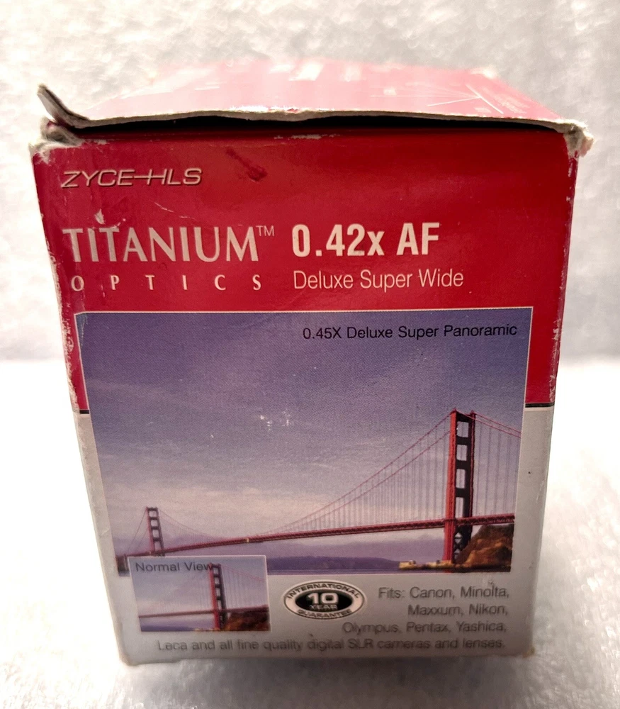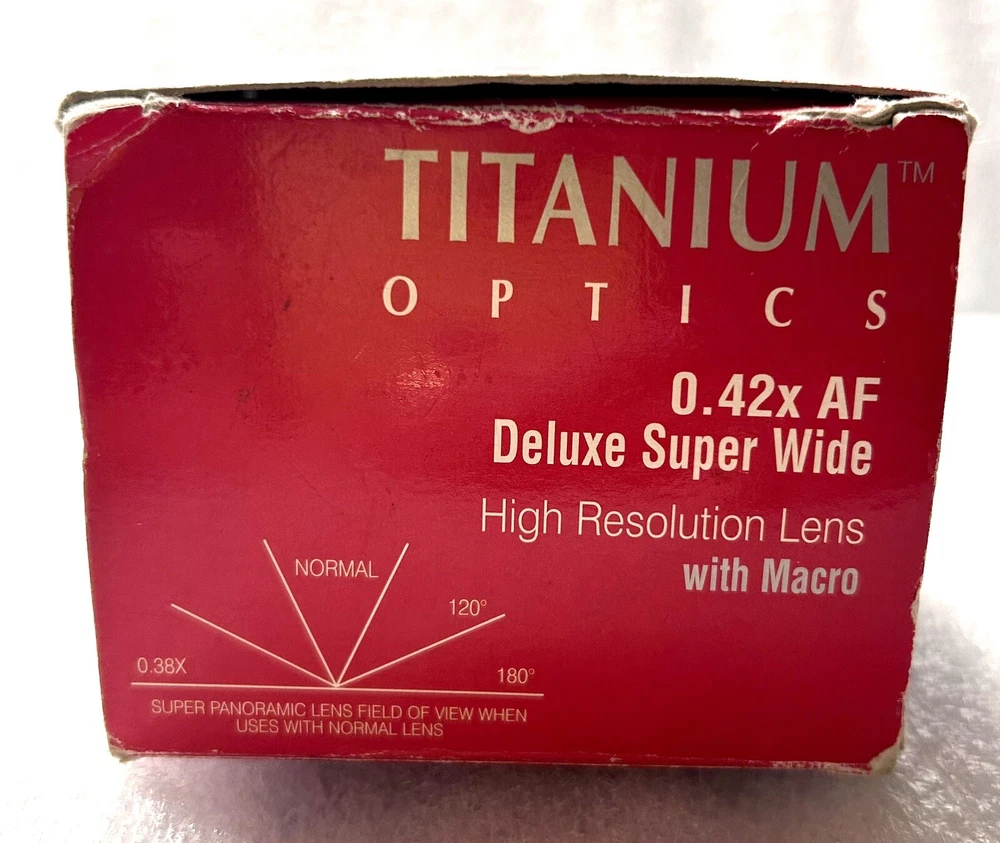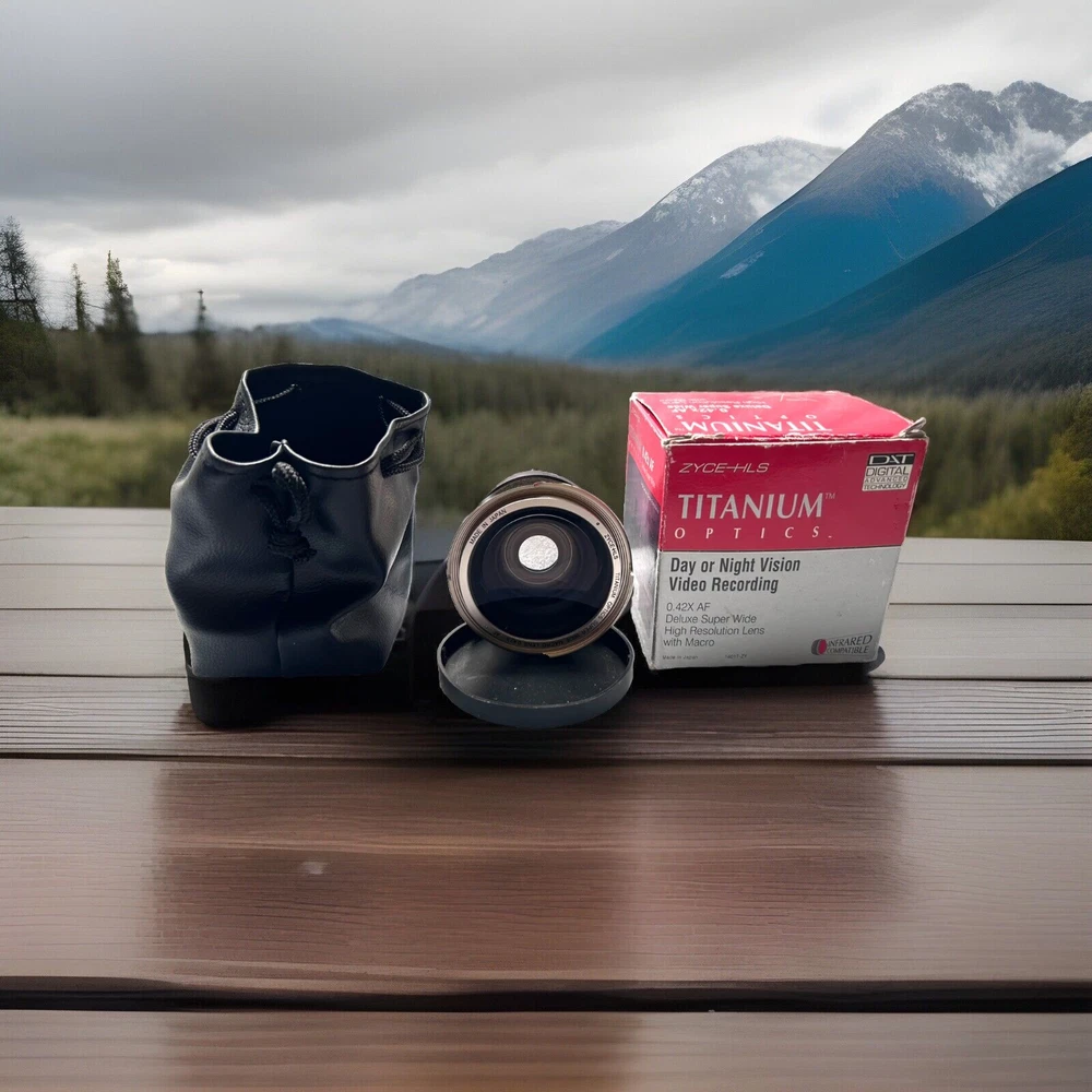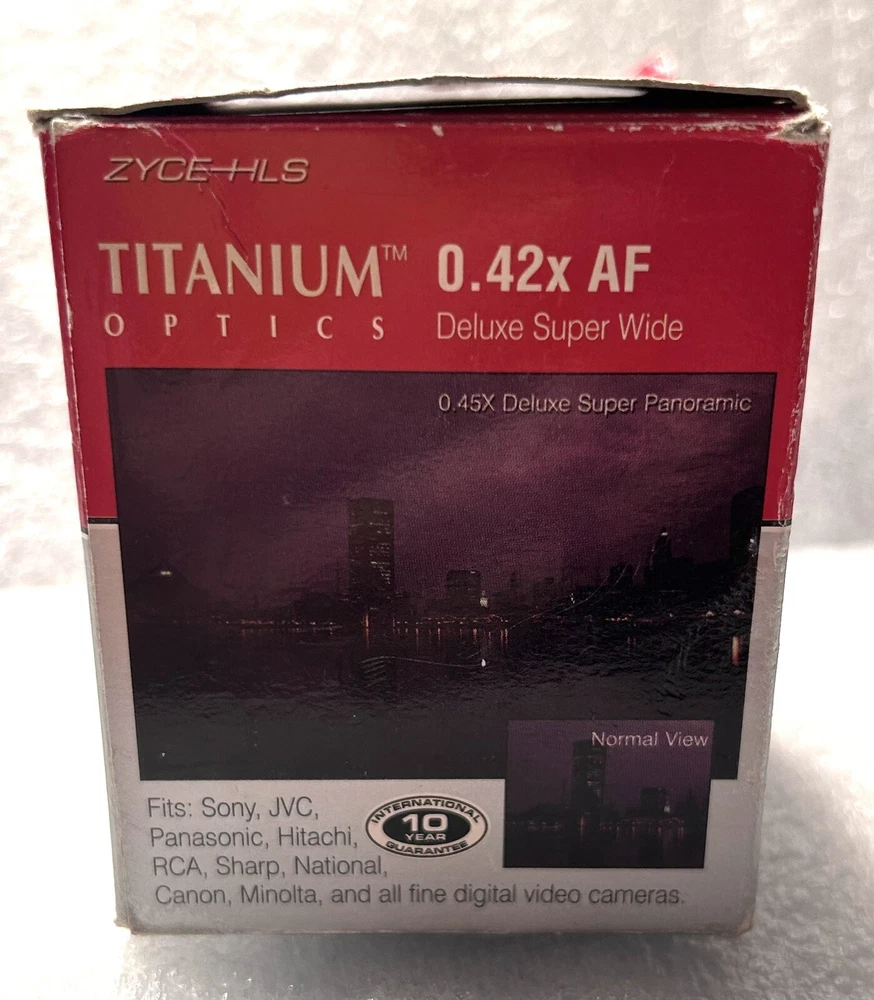 Capture stunning, high-resolution images with this Titanium 0.42X AF Macro Super Wide Angle Lens. Designed for use with various cameras and camcorders, this lens boasts a manual focus system and a screw mount for easy installation. Its super wide focal length and manual magnification factor of less than 1.2x make it perfect for capturing expansive scenes with incredible detail. Crafted in Japan, this lens is built to last and is compatible with VHS, VHS-C, 8mm camcorder, and 35mm/other cameras. Its compact design makes it easy to carry around and use, while its durable construction ensures that it will withstand even the toughest of conditions. With this lens, you can capture stunning, high-quality images with ease.