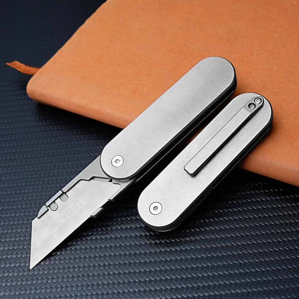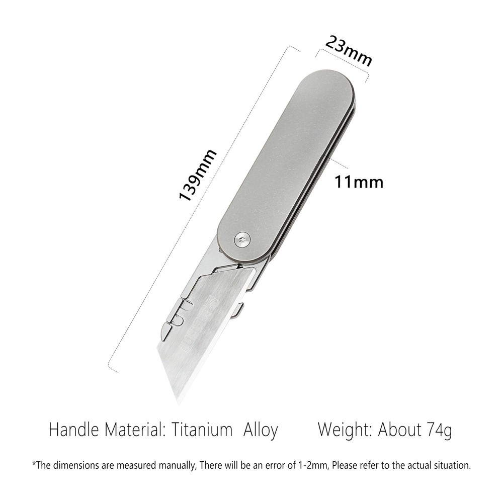 Titanium Folding Pocket Knife for Outdoor Hunting, Camping, Fishing, Hiking 【Uncompromising Razor Sharpness】: Crafted with a Carbon Steel blade, this knife delivers unrivaled strength, remarkable edge retention, and impressive corrosion resistance. Whether you're slicing, dicing, or cutting, the Folding Pocket Knife is your steadfast companion. [Strength and safety first] : Easily opened with one hand, the raised bushing locking mechanism allows the blade to maintain maximum strength and safety with every cut. The storage position of the blade is attached, which is convenient to replace the blade at any time and easy to carry. 【Distinctive Design, Unparalleled Comfort】: The Titanium Alloy handle of the Folding Pocket Knife not only adds a touch of sophistication but also guarantees a sure grip in any situation. Its unique cleaver-shaped blade is tailor-made for diverse cutting tasks, making it an essential tool for every challenge. 【Compact Classic】: The Titanium Alloy Knife is lightweight but with high hardness, wear resistance and corrosion resistance. Slip it into your pocket, and it's ready to leap into action at a moment's notice. The removable stainless steel pocket clip offers multiple carry options for your convenience. [Lifetime Warranty] : If you feel that the blade is loose or does not open or close smoothly, shake the product while ensuring that the surrounding area is secure. We offer a full money back guarantee, and if you experience any problems with your product, all our dedicated support team has to do is leave a message on Amazon. Customer satisfaction is our first priority, and your satisfaction is our commitment.