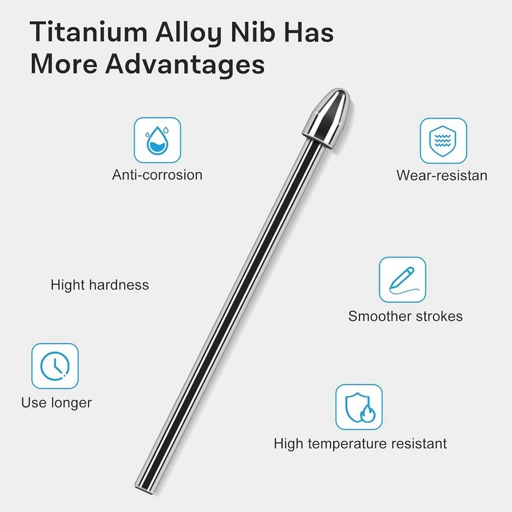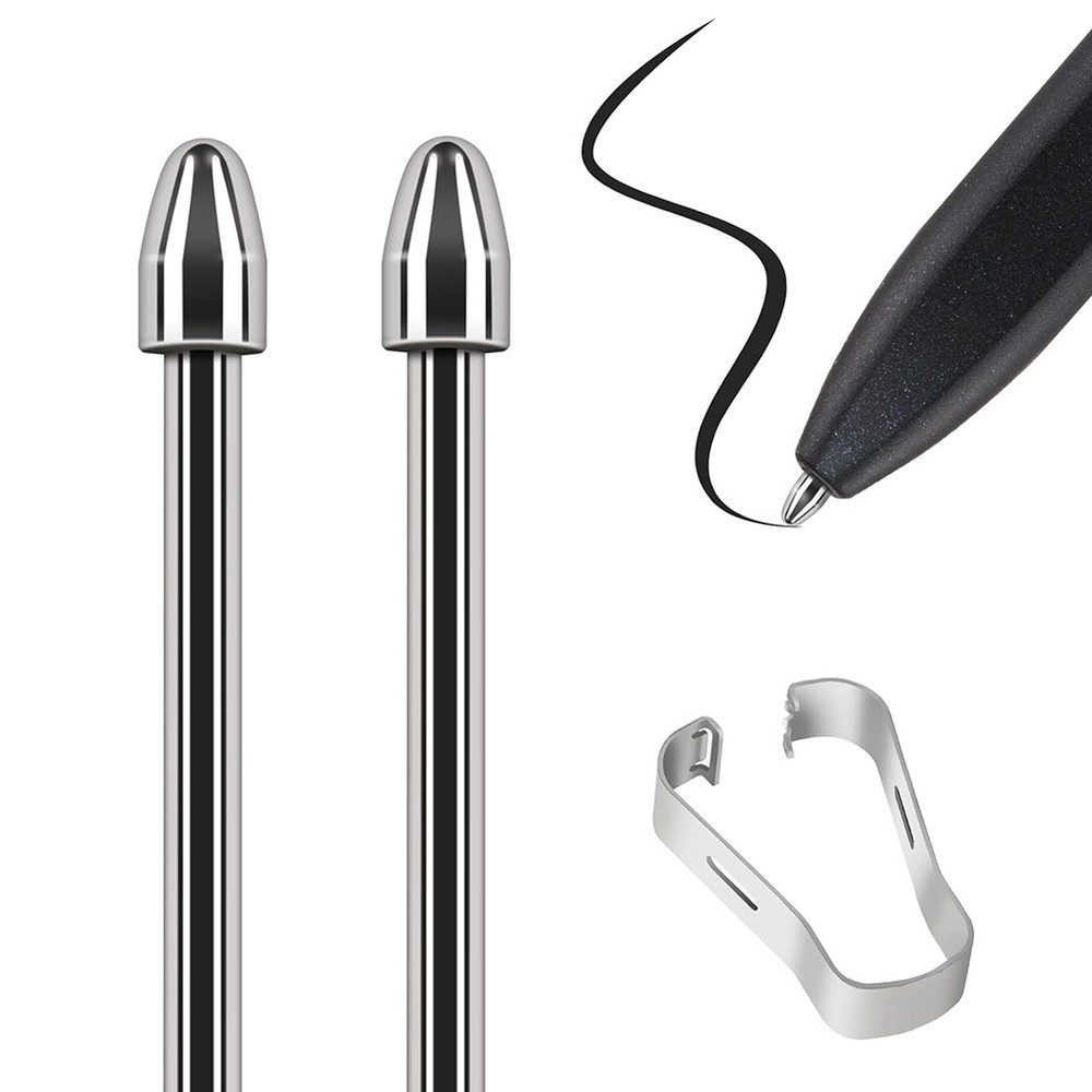 Replacement Marker Stylus Pen Tips for 2 Tablet- Titanium Alloy Metal7368 [Compatibility]Highly compatible, specifically designed to work seamlessly with devices such as for the 2, also fits for Scribe. [Metal]Metal material, longer use time and smoother writing. [Palm rejection and Tilt support]The pen features a palm rejection function and tilt writing capabilities, making it comfortable to use for long periods. With 4090 pressure sensitivity, users can write and draw with extreme precision and control, delivering excellent writing and graphical output. [Easily Install]The package includes pen tips/nibs, tweezer (help you quick installation), please note not including the pen. Colour:Silver Material:Metal Package Contents: 2 x Marker Stylus Pen Tips 1 x tweezer