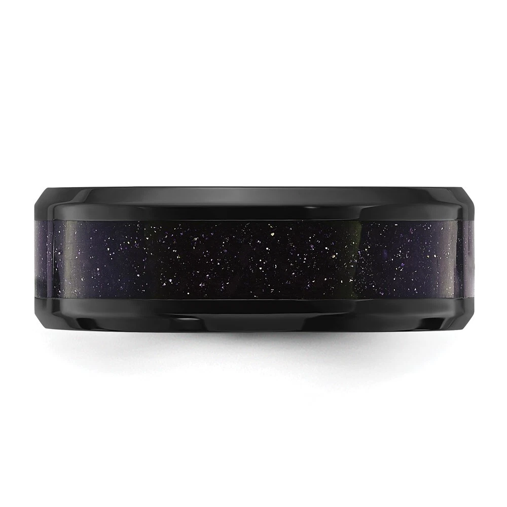 Titanium Black IP-plated with Blue Star Sandstone Inlay 8mm Band Ring Size 10