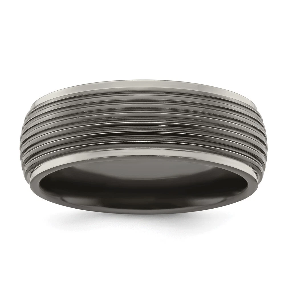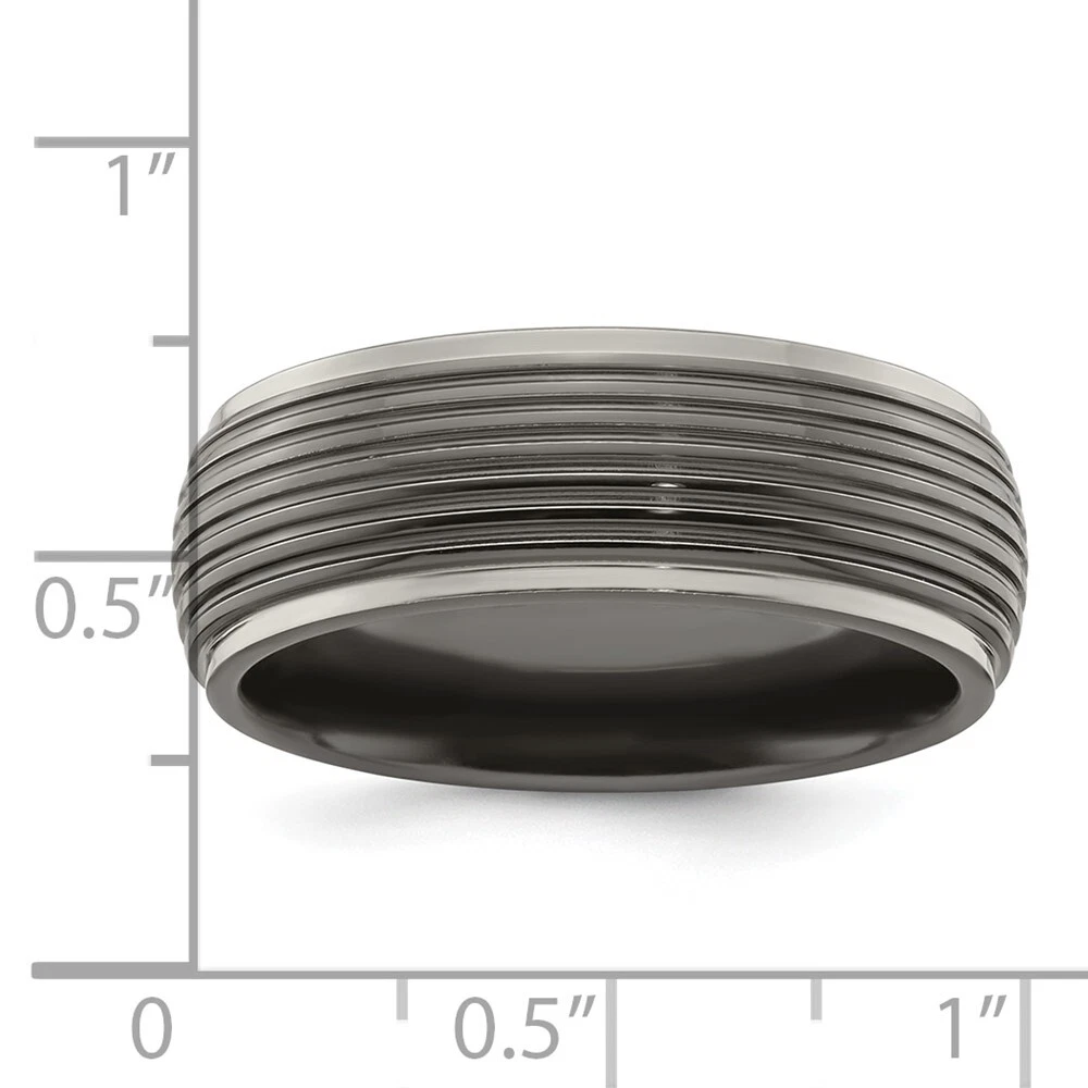 Band Width:8 mm|Material: Primary:Titanium|Ring Fit:Standard|Sizeable:No|Warranty:Limited Lifetime Warranty|Item Weight U/M:gm|Engravable:Yes|Packaging:Gift Boxed|Product Type:Jewelry|Jewelry Type:Rings|Texture:Grooved|Material: Primary - Color:Grey|Ring Type:Wedding Bands|Edge Type:Step Down|Ring Shape:Domed All weights and measurements are approximate and may vary slightly from the listed information. Welcome to diamond_6720 Payments We accept all Ebay approved payment. Please sent the payment to us within 8 days after the auction has ended, or you will have unpaid case auto open by eBay. Shipping Policy We will ship all items within 1 business days of purchase during the work week (M-F) excluding holidays. If you order on Friday, your order will be shipped the following business day. Tracking will be provided when it becomes available. We will only ship to a PayPal Verified Address. Please make sure your address is current and correct. If the information does not match, your order may be canceled. Buyers are responsible for all customs, duties and taxes for your respective countries. Delivery times for International Shipping will vary. California Buyers Pay 9.0% Tax on all orders. case auto open by eBay. Return Policy & Exchange Returns or Exchange are accepted. Buyer must contact us within 30 days after the item is received. Item must be returned in unworn and resalable condition. We will only issue a refund for the purchase price, excluding any shipping fees. If we are at fault, we will provide a full refund. Buyer is responsible for all return shipping costs. BUYERS FEEDBACK If you have any concerns regarding your purchase, please contact us via eBay Message, we assure you that a satisfactory resolution will be reached. Your feedback is very important to us Do remember to give us 5 star rating(*****) if you are satisfied with our product & service .