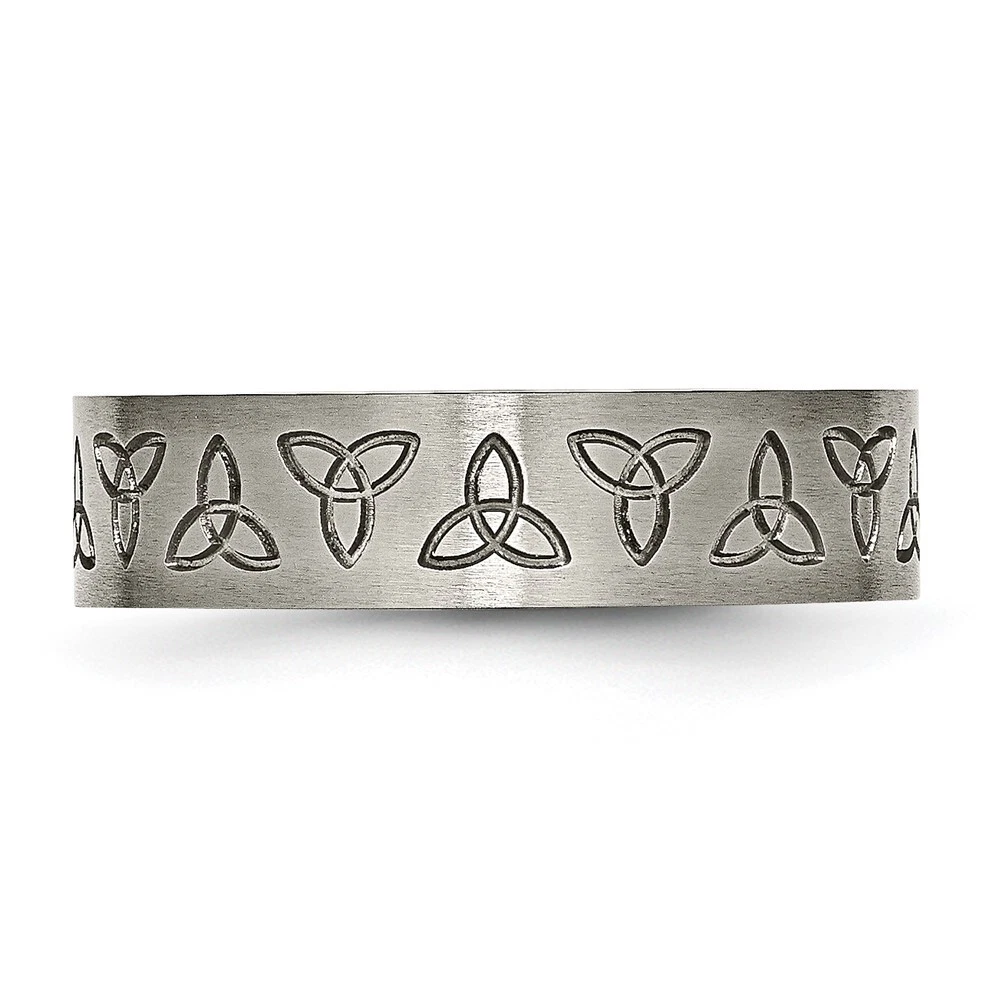 Finish:Brushed|Band Width:6 mm|Material: Primary:Titanium|Ring Fit:Standard|Sizeable:No|Thickness:< 2 mm|Item Weight U/M:gm|Width of Item:6 mm|Pre-Engraved Design:Trinity Symbol|Engravable:Yes|Packaging:Gift Pouch|Product Type:Jewelry|Jewelry Type:Rings|Sold By Unit:Each|Gender:Unisex|Material: Primary - Color:Grey|Ring Type:Wedding Bands|Edge Type:Flat|Ring Shape:Flat All weights and measurements are approximate and may vary slightly from the listed information. Welcome to diamond_6720 Payments We accept all Ebay approved payment. Please sent the payment to us within 8 days after the auction has ended, or you will have unpaid case auto open by eBay. Shipping Policy We will ship all items within 1 business days of purchase during the work week (M-F) excluding holidays. If you order on Friday, your order will be shipped the following business day. Tracking will be provided when it becomes available. We will only ship to a PayPal Verified Address. Please make sure your address is current and correct. If the information does not match, your order may be canceled. Buyers are responsible for all customs, duties and taxes for your respective countries. Delivery times for International Shipping will vary. California Buyers Pay 9.0% Tax on all orders. case auto open by eBay. Return Policy & Exchange Returns or Exchange are accepted. Buyer must contact us within 30 days after the item is received. Item must be returned in unworn and resalable condition. We will only issue a refund for the purchase price, excluding any shipping fees. If we are at fault, we will provide a full refund. Buyer is responsible for all return shipping costs. BUYERS FEEDBACK If you have any concerns regarding your purchase, please contact us via eBay Message, we assure you that a satisfactory resolution will be reached. Your feedback is very important to us Do remember to give us 5 star rating(*****) if you are satisfied with our product & service .
