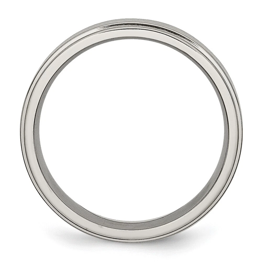 Titanium Brushed Center 6mm Ridged Edge Band Ring Size 11 for Men 3.27gm