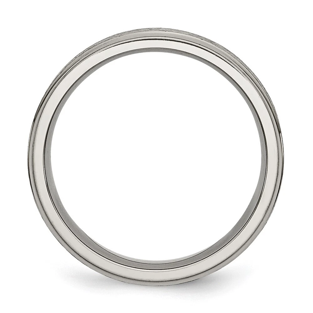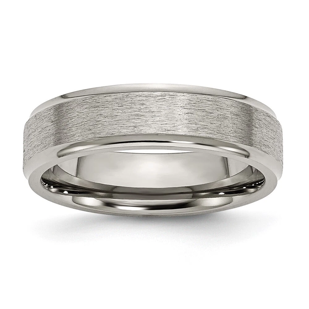 Finish:Polished & Brushed|Band Width:6 mm|Material: Primary:Titanium|Ring Fit:Standard|Sizeable:No|Thickness:< 2 mm|Item Weight U/M:gm|Width of Item:6 mm|Engravable:Yes|Packaging:Gift Pouch|Product Type:Jewelry|Jewelry Type:Rings|Sold By Unit:Each|Gender:Unisex|Texture:Satin|Material: Primary - Color:Grey|Ring Type:Wedding Bands|Edge Type:Ridged All weights and measurements are approximate and may vary slightly from the listed information. Welcome to diamond_6720 Payments We accept all Ebay approved payment. Please sent the payment to us within 8 days after the auction has ended, or you will have unpaid case auto open by eBay. Shipping Policy We will ship all items within 1 business days of purchase during the work week (M-F) excluding holidays. If you order on Friday, your order will be shipped the following business day. Tracking will be provided when it becomes available. We will only ship to a PayPal Verified Address. Please make sure your address is current and correct. If the information does not match, your order may be canceled. Buyers are responsible for all customs, duties and taxes for your respective countries. Delivery times for International Shipping will vary. California Buyers Pay 9.0% Tax on all orders. case auto open by eBay. Return Policy & Exchange Returns or Exchange are accepted. Buyer must contact us within 30 days after the item is received. Item must be returned in unworn and resalable condition. We will only issue a refund for the purchase price, excluding any shipping fees. If we are at fault, we will provide a full refund. Buyer is responsible for all return shipping costs. BUYERS FEEDBACK If you have any concerns regarding your purchase, please contact us via eBay Message, we assure you that a satisfactory resolution will be reached. Your feedback is very important to us Do remember to give us 5 star rating(*****) if you are satisfied with our product & service .